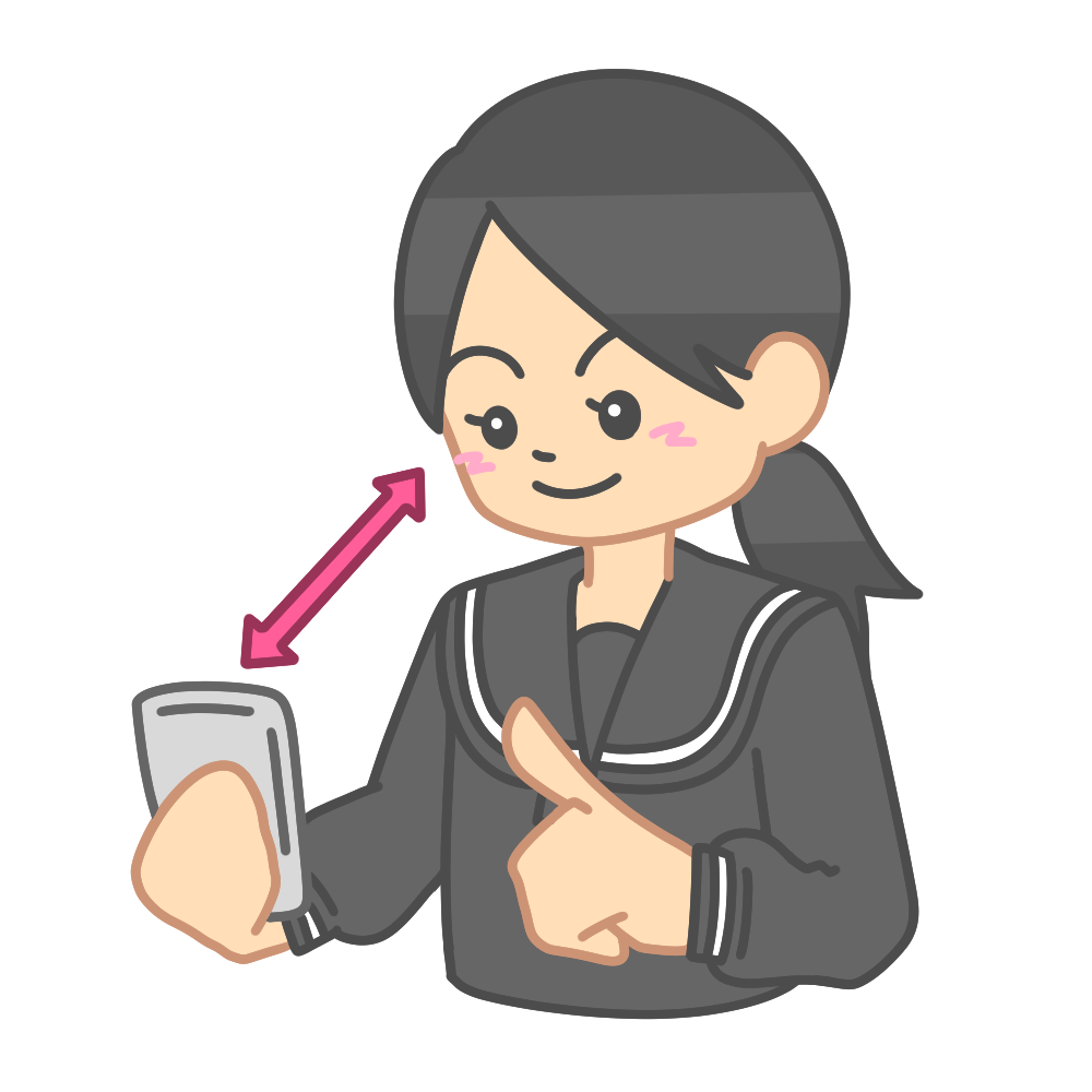 スマホを目から離して使用するセーラー服を着た生徒のイラストです。(スマートフォン、健康指導、情報モラ […] -