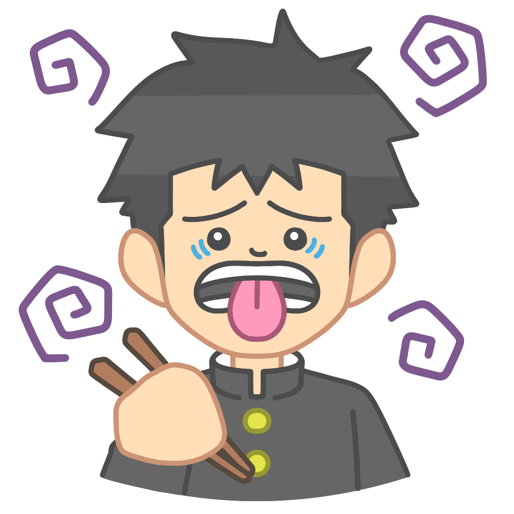 お箸を持って不味い顔をするブレザーを着た男子生徒のイラストです。 食べ物を口にしたあと、お箸を持ちな […]