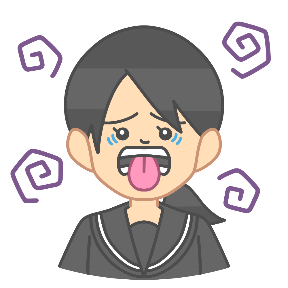 苦い顔をするセーラー服を着た女子生徒のイラストです。 苦いものを食べたときのように、舌を出して「にが […] -
