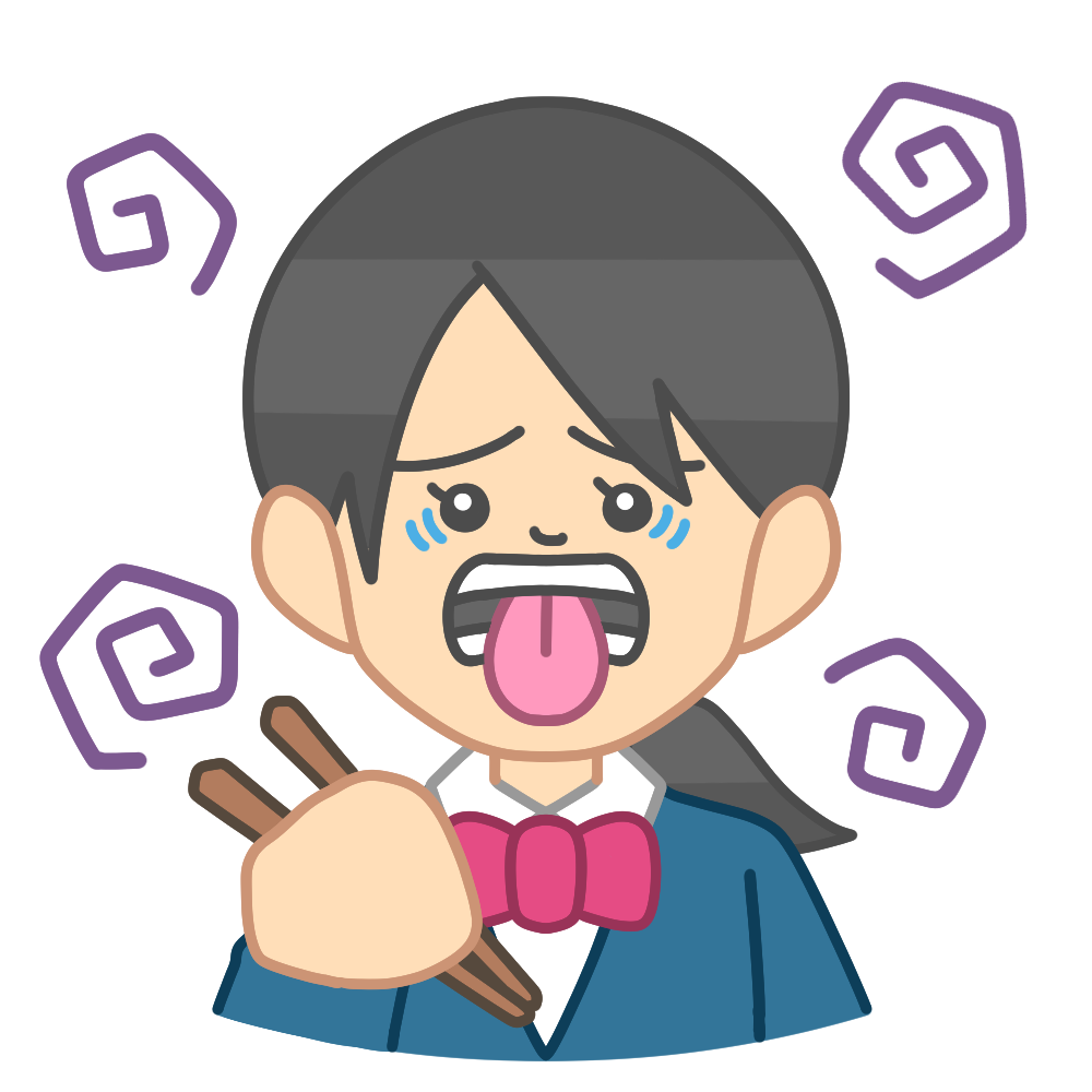 お箸を持って不味い顔をするブレザーを着た女子生徒のイラストです。 食べ物を口にしたあと、お箸を持ちな […] -