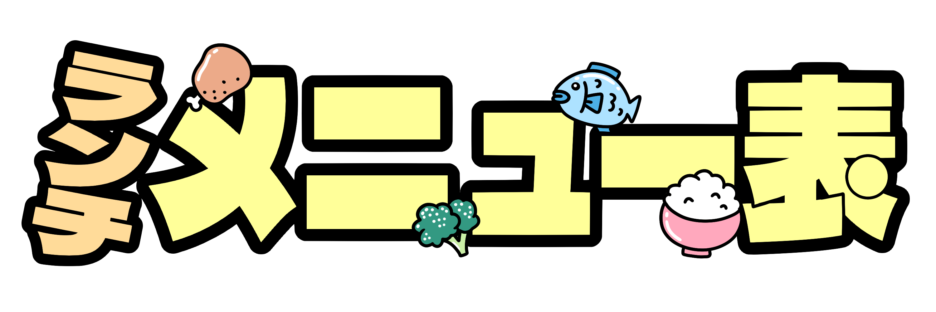 「ランチメニュー表」の文字イラストです。(ランチメニュー表 給食 献立 食材 見出し) 肉や魚、ブロ […] -