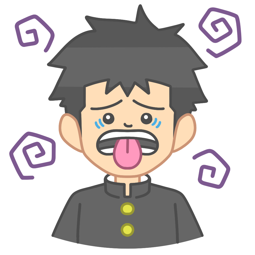 苦い顔をする学ランを着た男子生徒のイラストです。 苦いものを食べたときのように、舌を出して「にがい… […] -