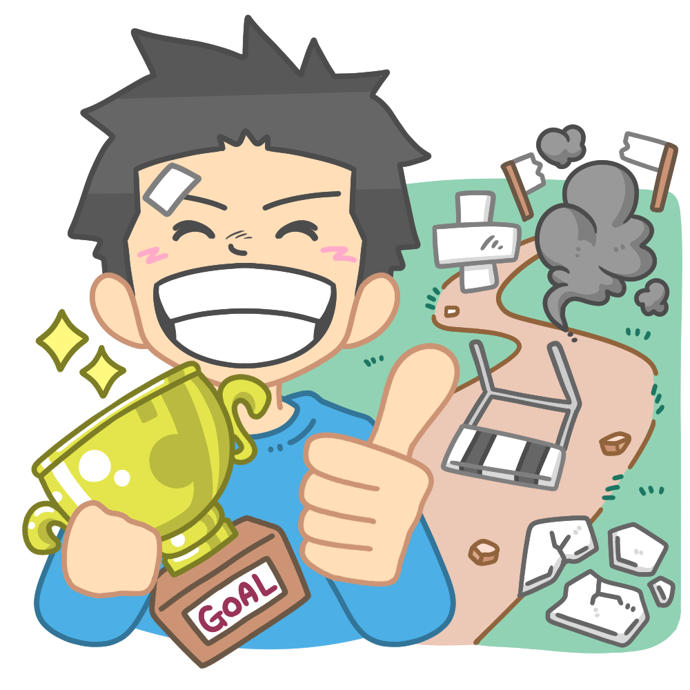 終わり良ければすべて良しのイラストです。 途中の道では転んだり失敗したりしているものの、最後にはゴー […]