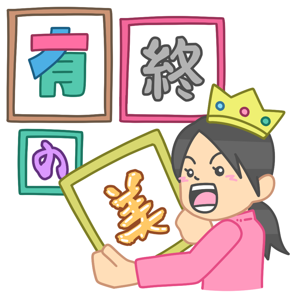 有終の美を飾るのイラストです。 「有終の美」と書かれた額縁をうれしそうに飾っている女性の様子を描いた […] -