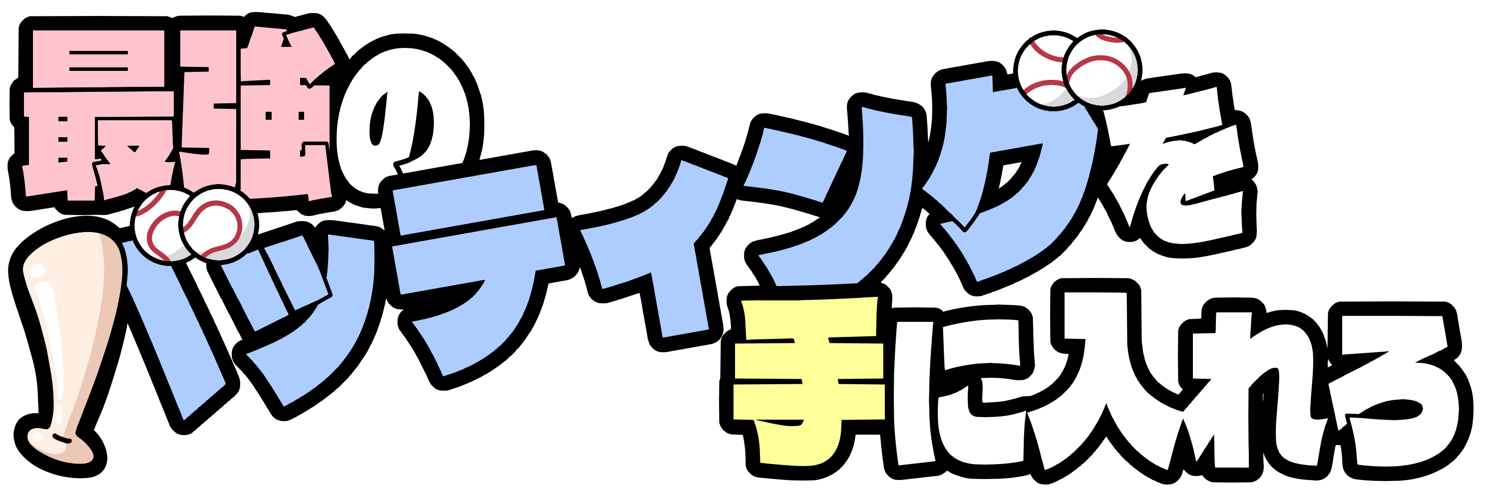 「最強のバッティングを手に入れろ」の文字イラストです。(バッティング 野球 スイング 練習 上達 目 […] -