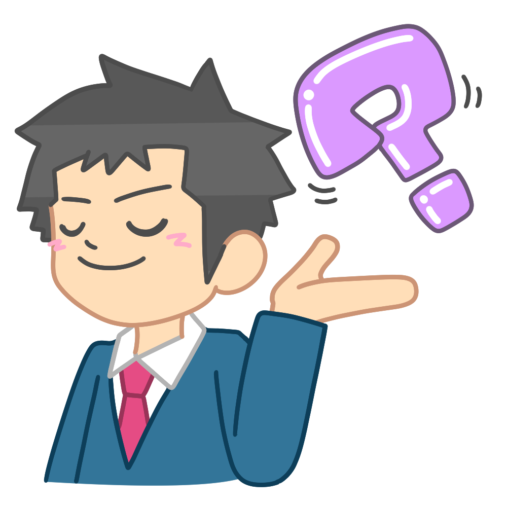 悩まない男性のイラストです。(悩まない クエスチョンマーク 前向き 気にしない 自信) クエスチョン […] -