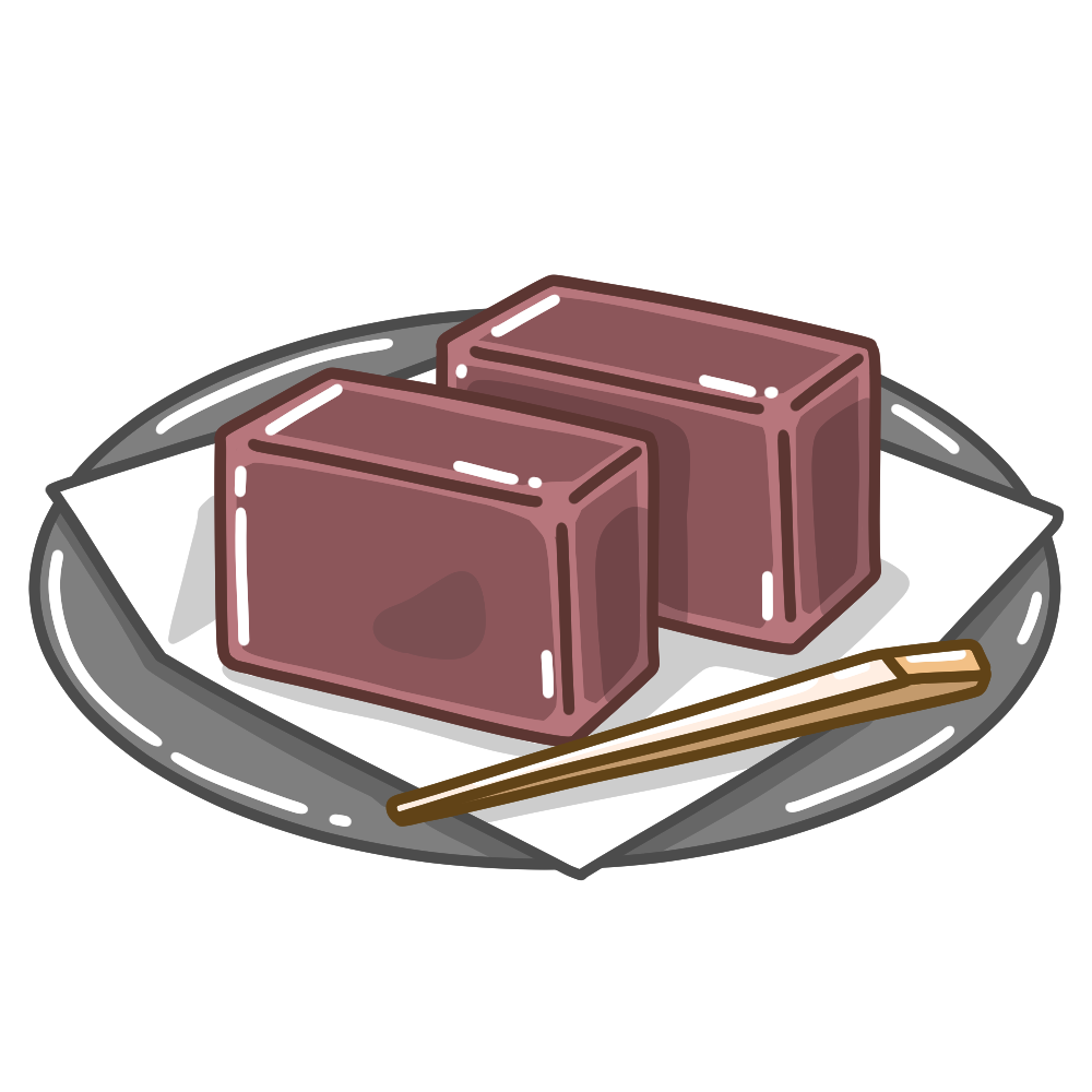 羊羹のイラストです。(ようかん 和菓子 おやつ 甘味 デザート) つやのある見た目が特徴的な羊羹をや […] -