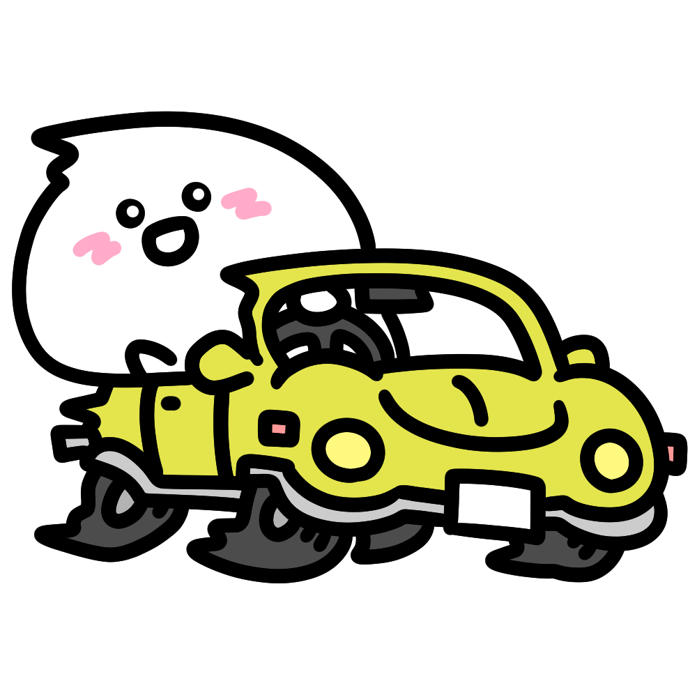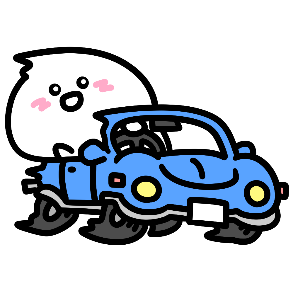 車を運転している可愛いしらたまのイラストです。【ドライブ】