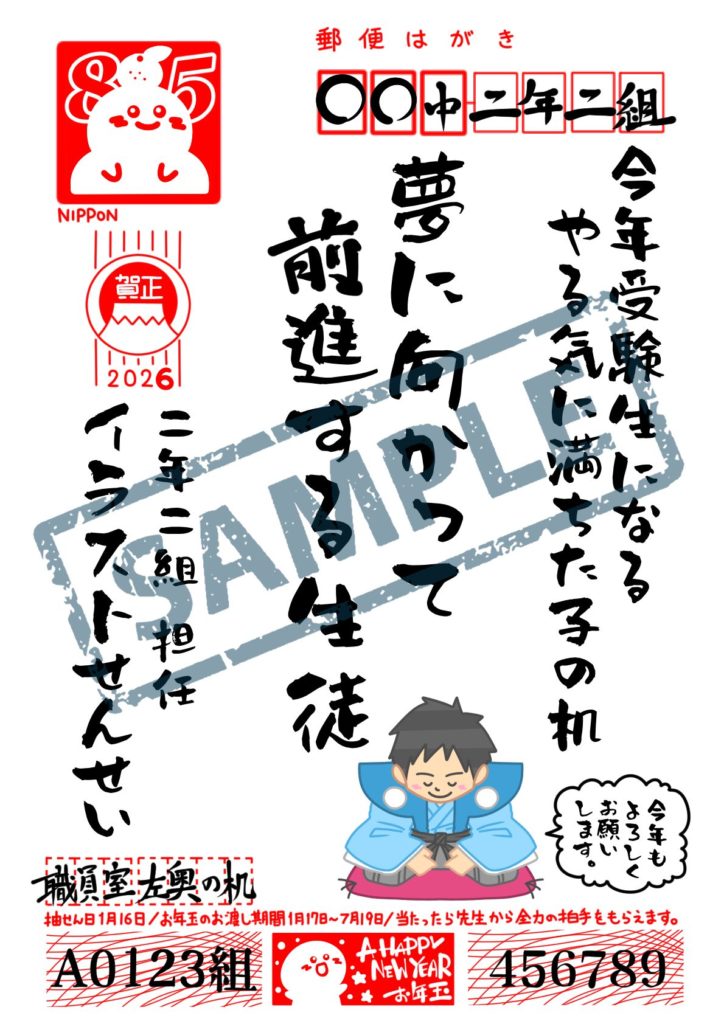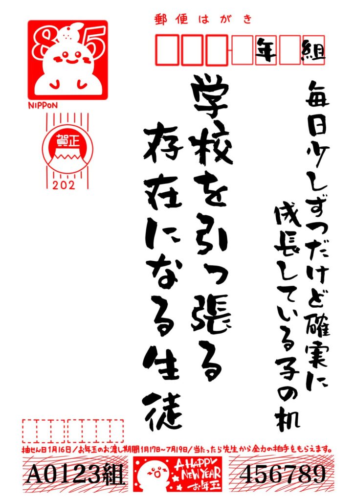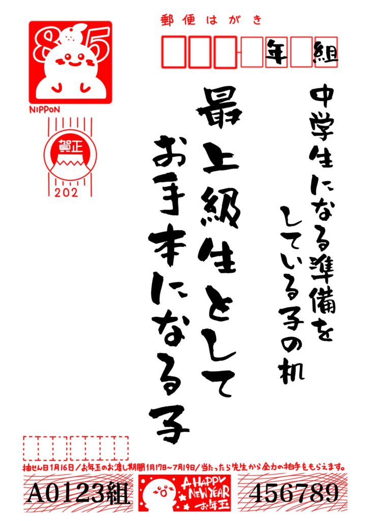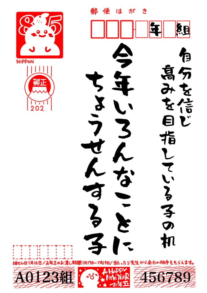 年賀状(学級通信用) 投稿日 2024-12-03 更新日 2026-01-09 著者 hista006 カテゴリー フレーム・ライン カテゴリー 正月 新年最初の学級通信の裏面に使える年賀状のイラストです。※西暦も忘れずに書き込んでください。 おすすめ お便り はがき フレーム 年賀状 正月