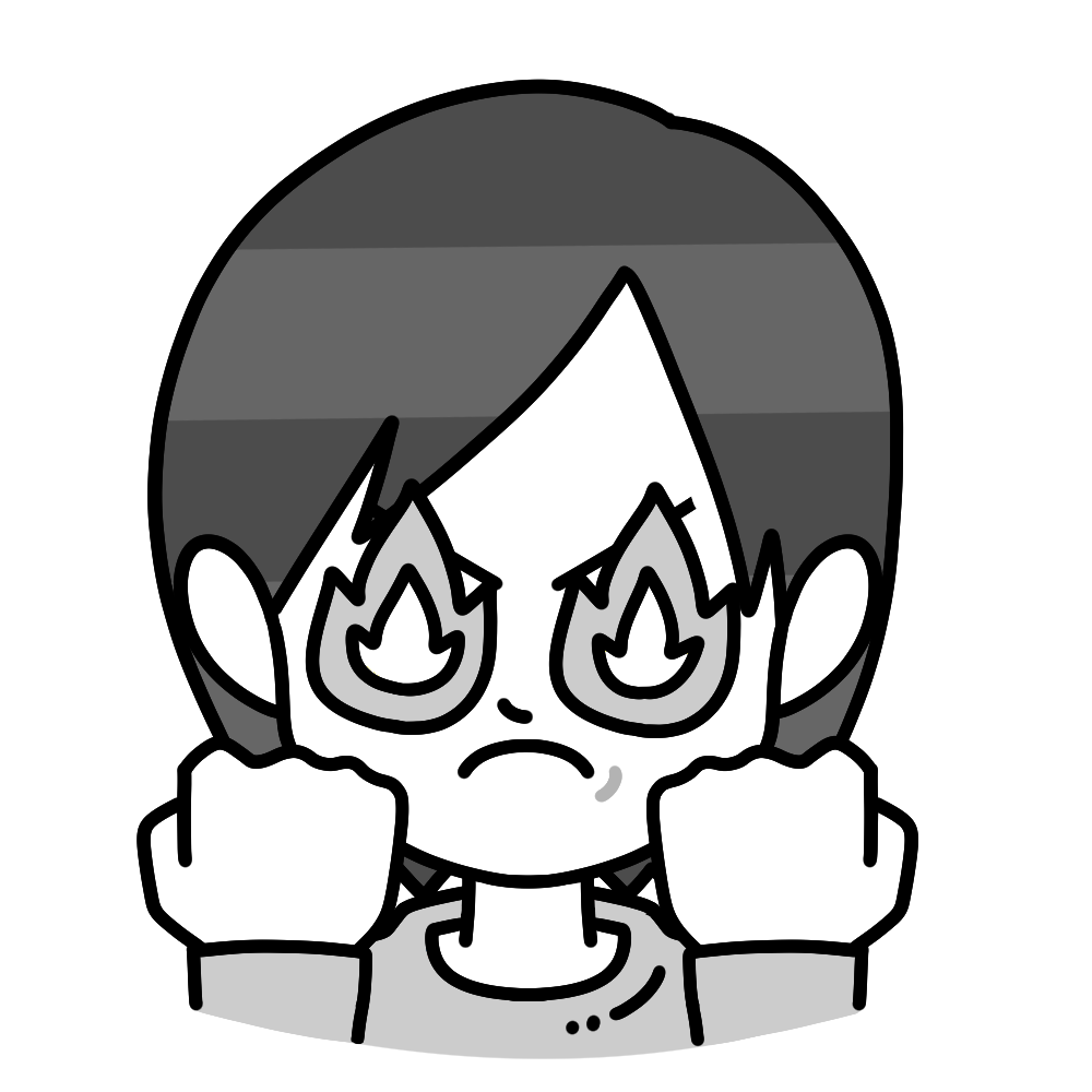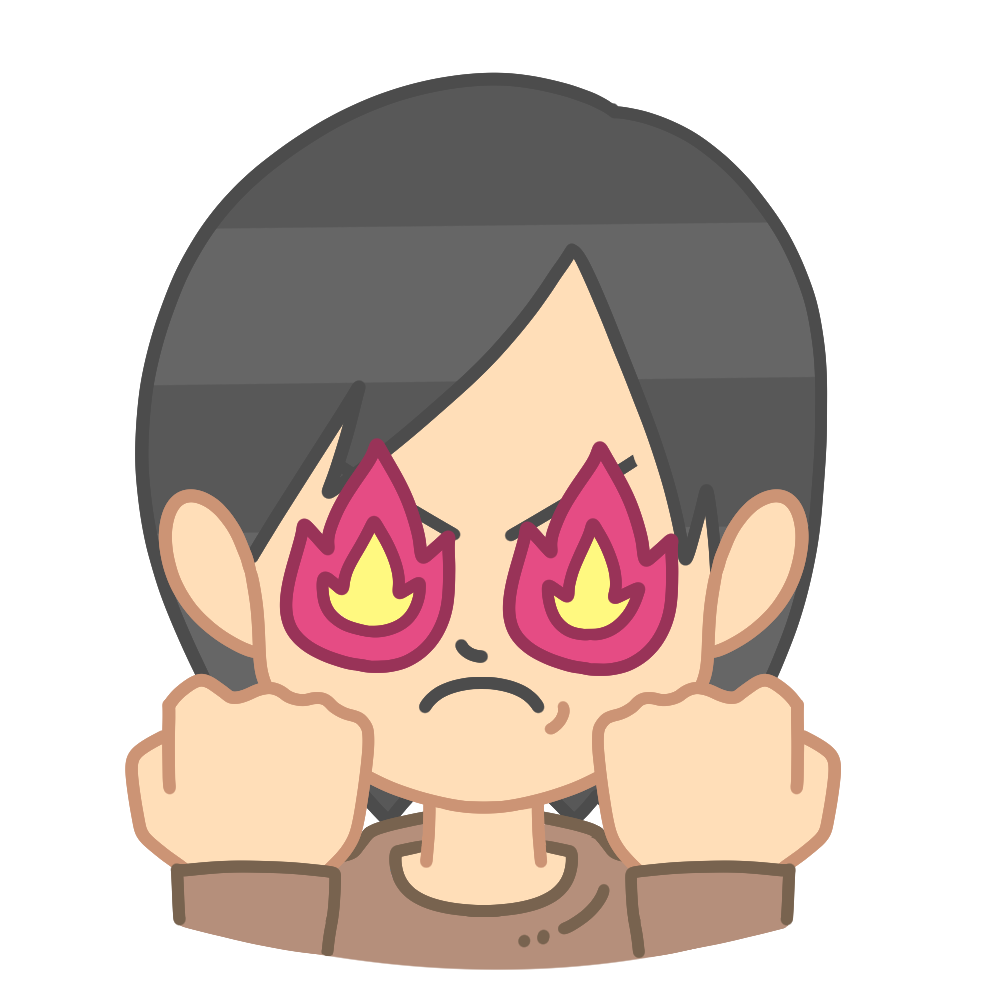 やる気に満ちて目が燃える中年女性のイラストです。