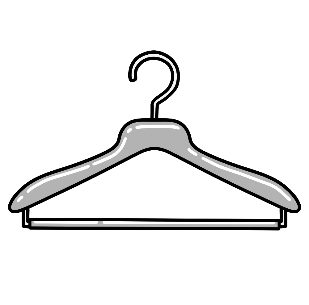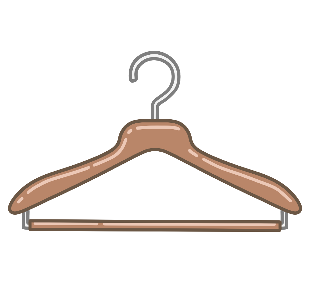 服をかける木製のハンガーのイラストです。