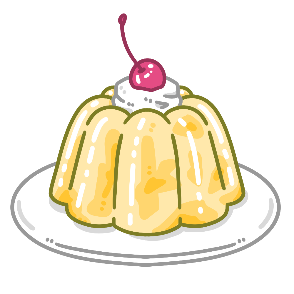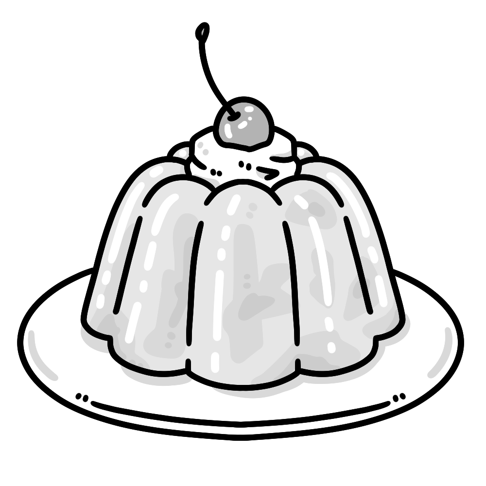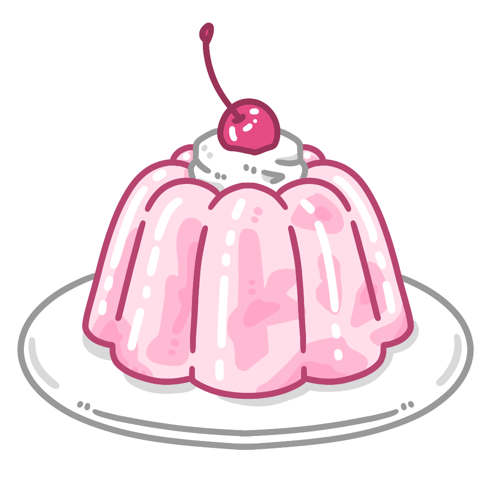 生クリームとさくらんぼが乗ったゼリーのイラストです。【デザート】