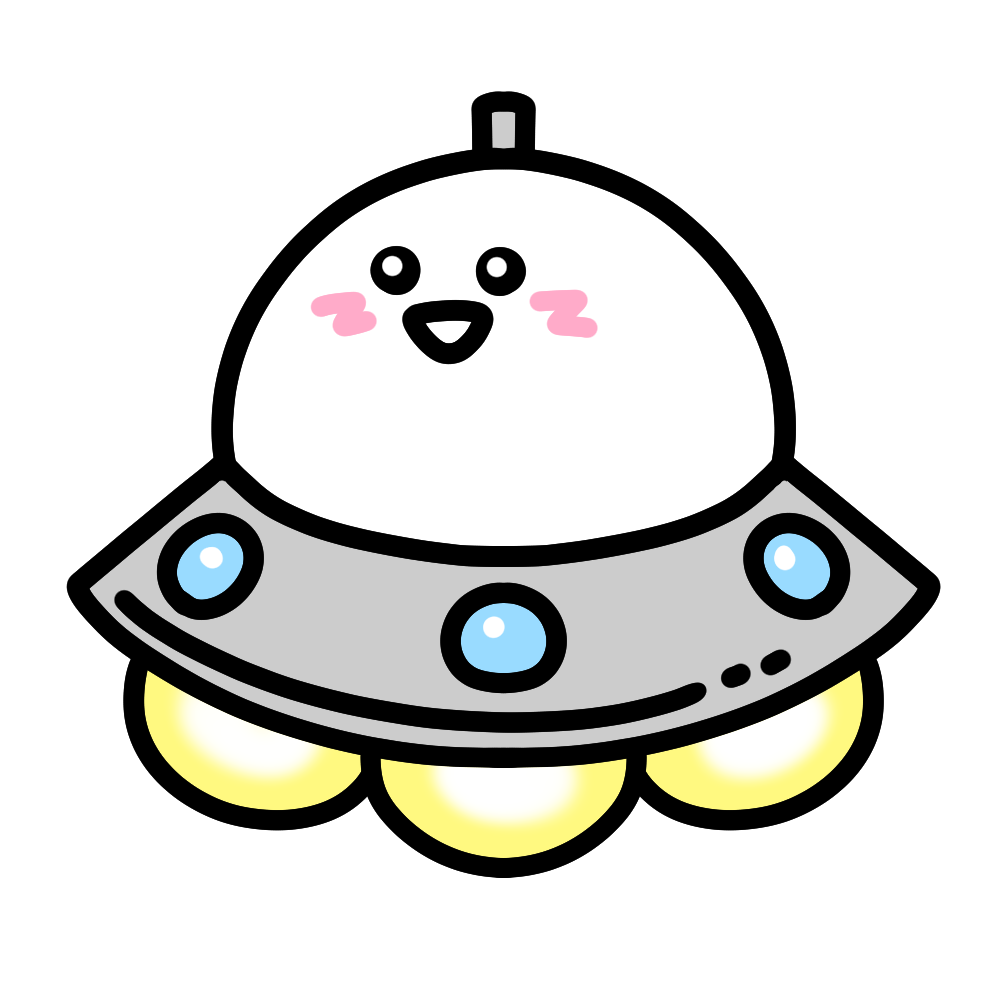 未確認飛行物体になって確認された可愛いしらたまのイラストです。