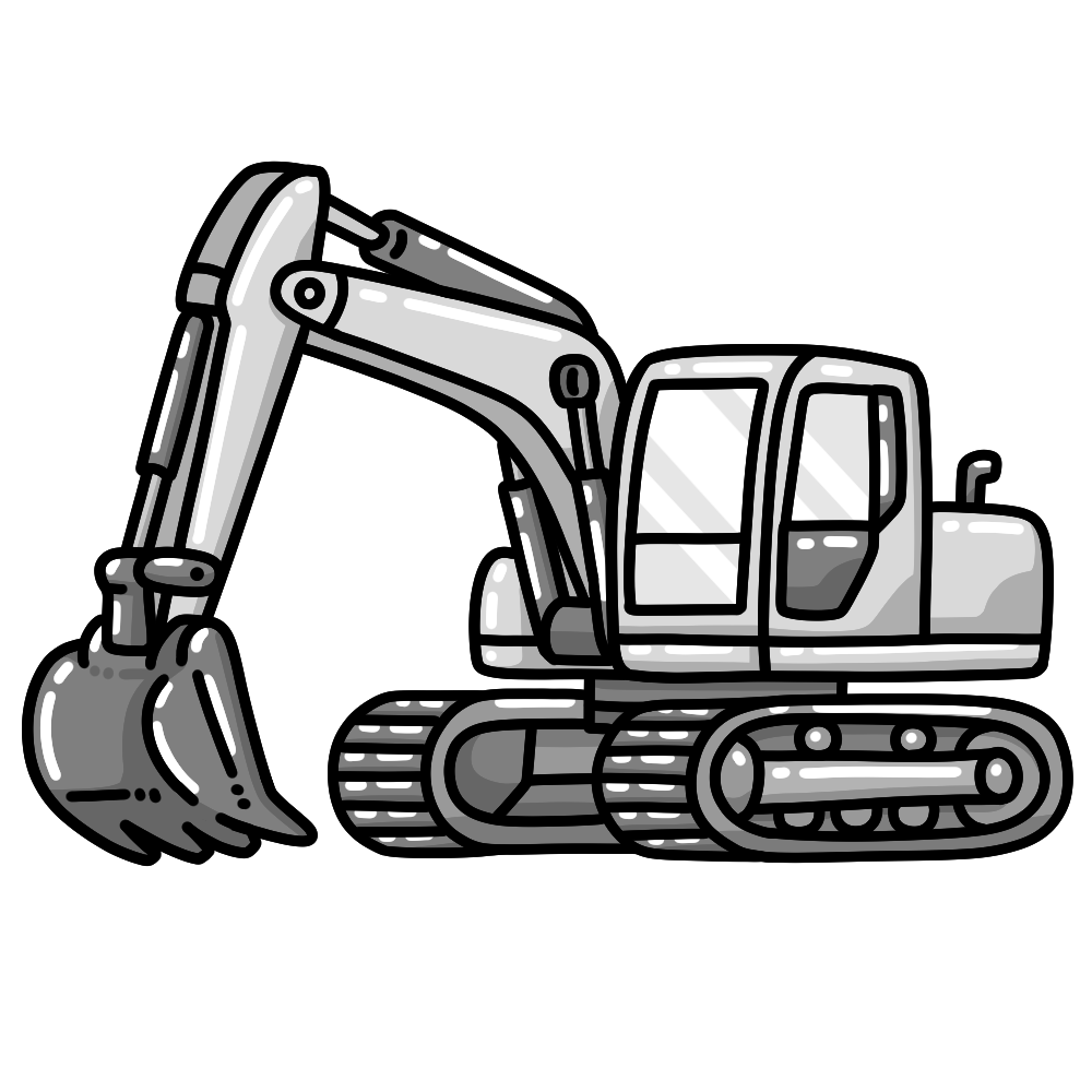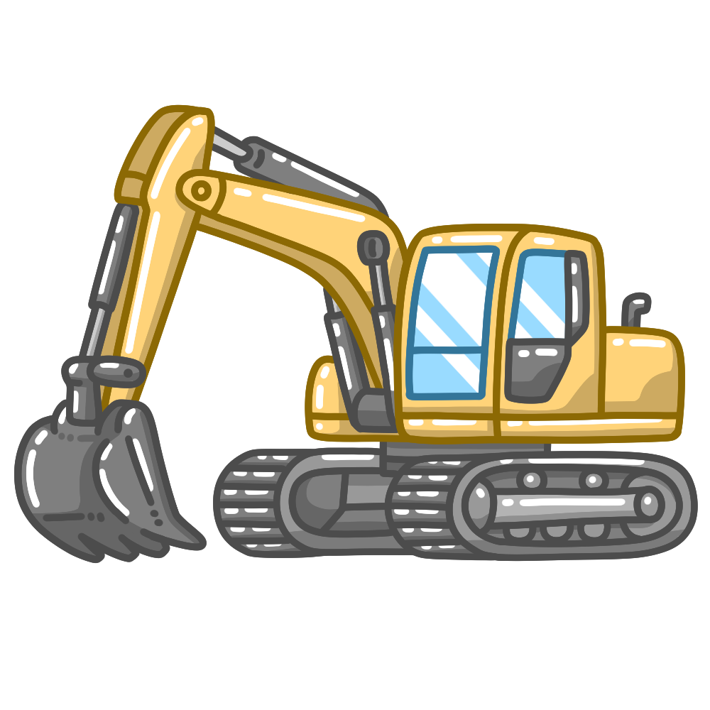 ショベルカーのイラストです。【乗り物、工事】