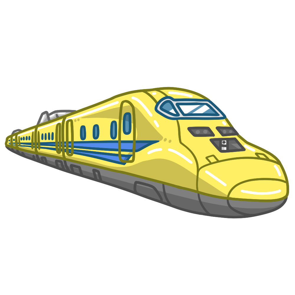 東海道・山陽新幹線の線路や設備を点検する検査車両で、「新幹線のお医者さん」とも呼ばれていたドクターイエローのイラストです。【新幹線電気軌道総合試験車、幸せの黄色い新幹線】