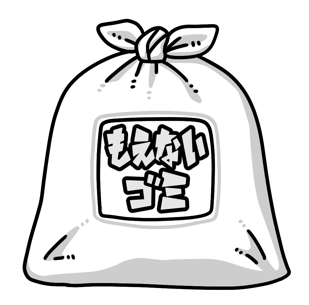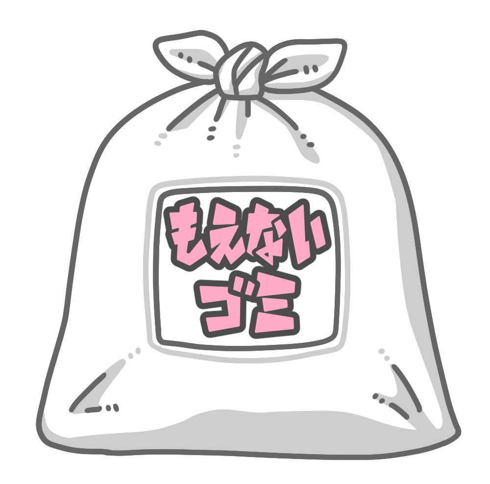 ゴミ袋に入った「燃えないゴミ」のイラストです。【不燃ゴミ、燃やせないゴミ、大掃除】