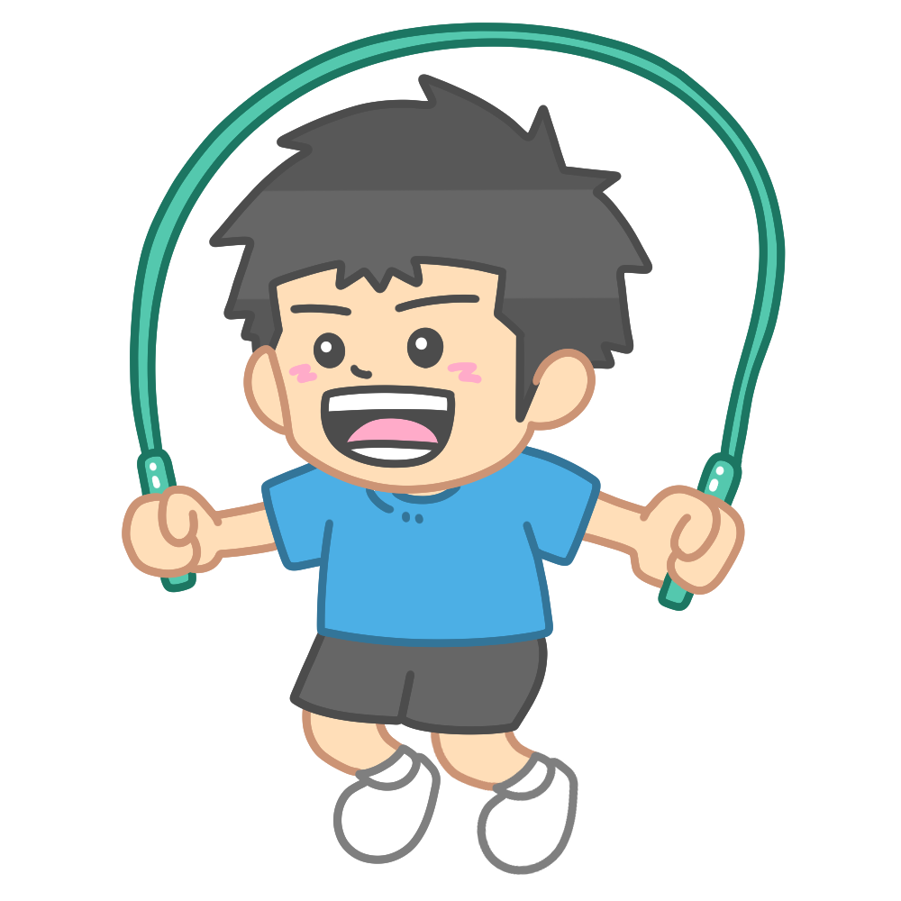 縄跳びを飛ぶ児童のイラストです。【休み時間】