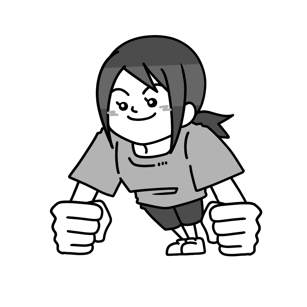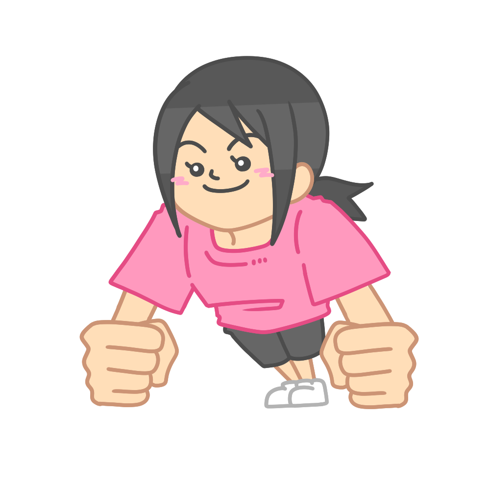 ドルフィンプランクポーズ(肘付きプランク)をする女性のイラストです。【ヨガ】