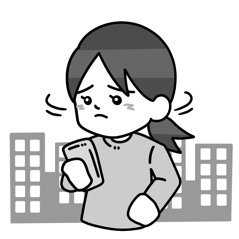 都会や田舎で道に迷う女性のイラストです。【旅行】