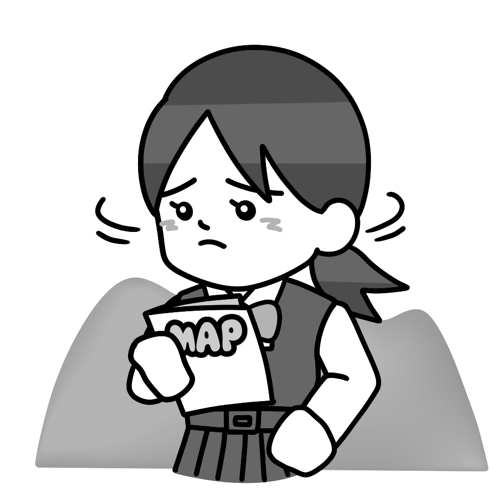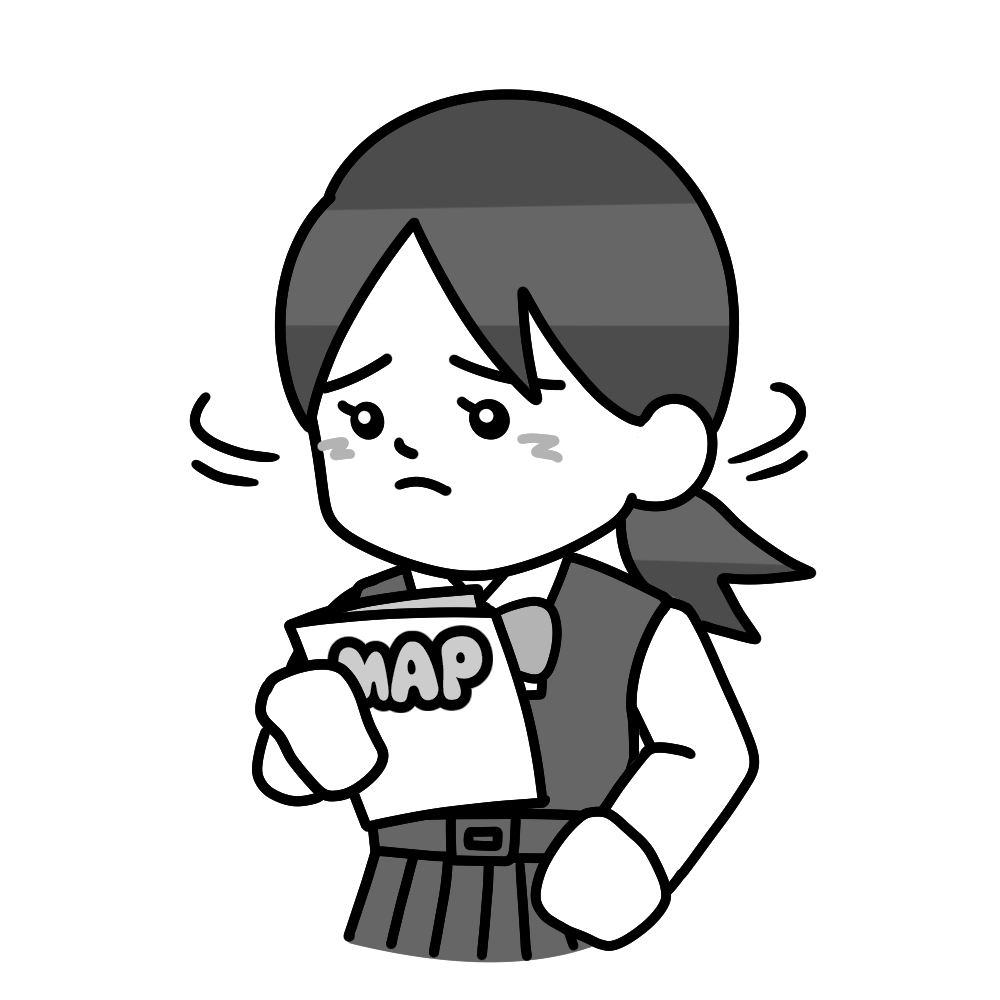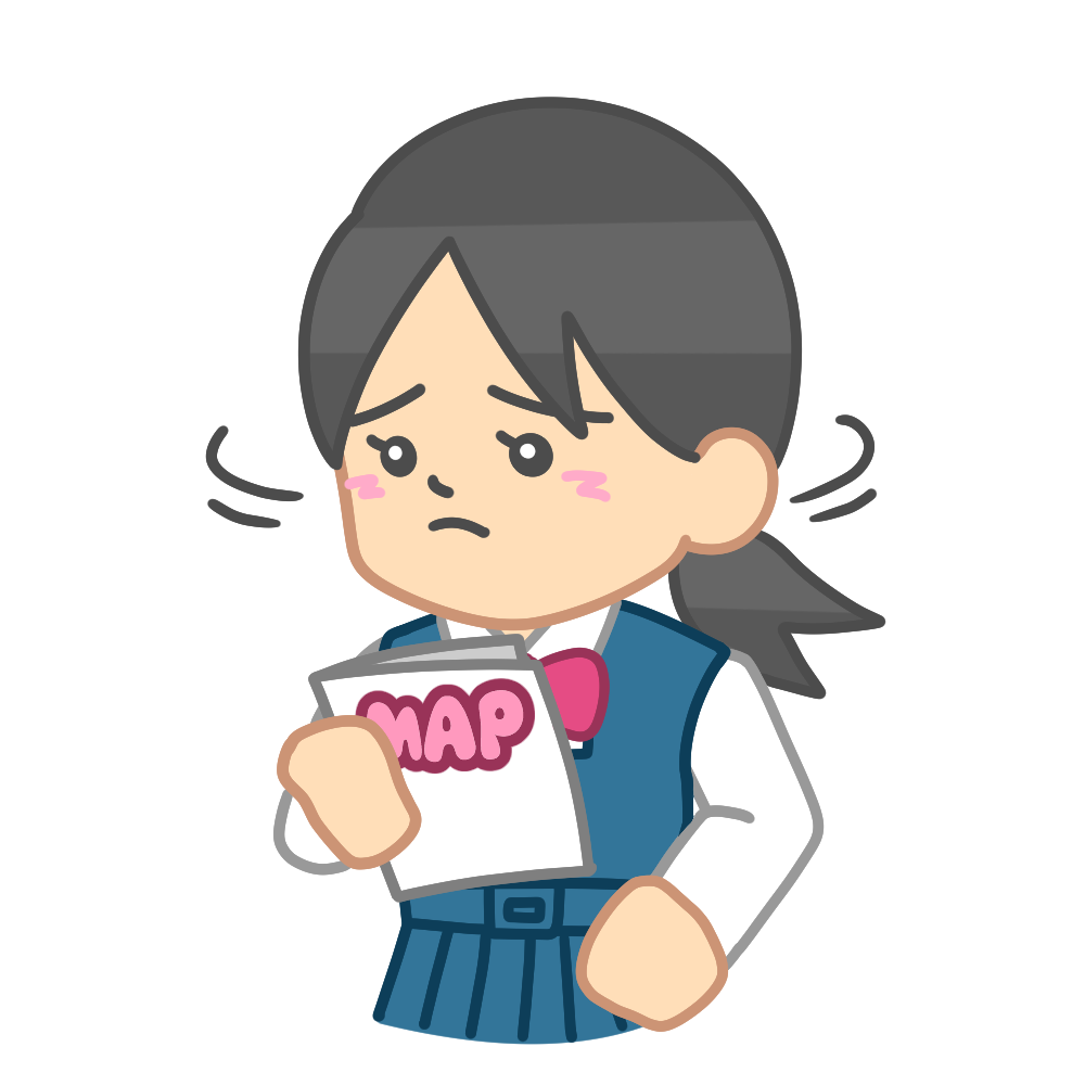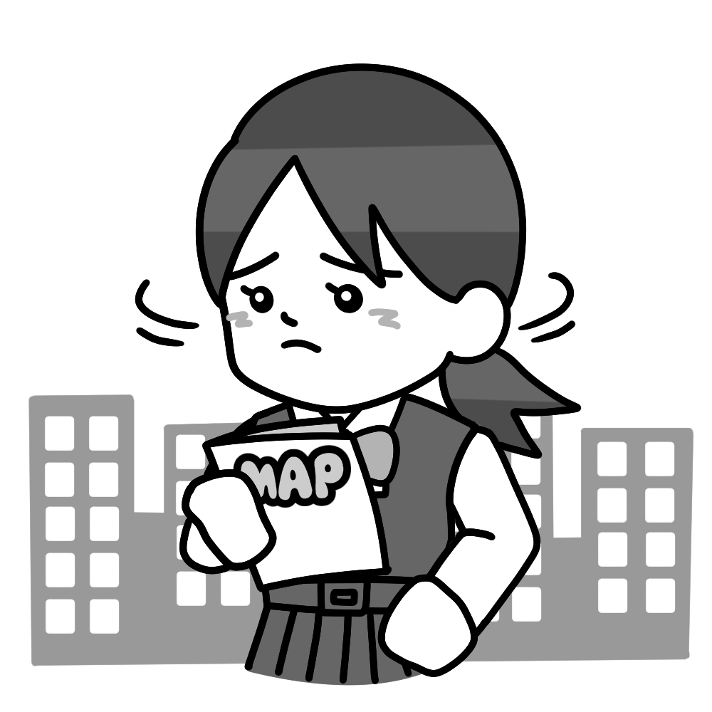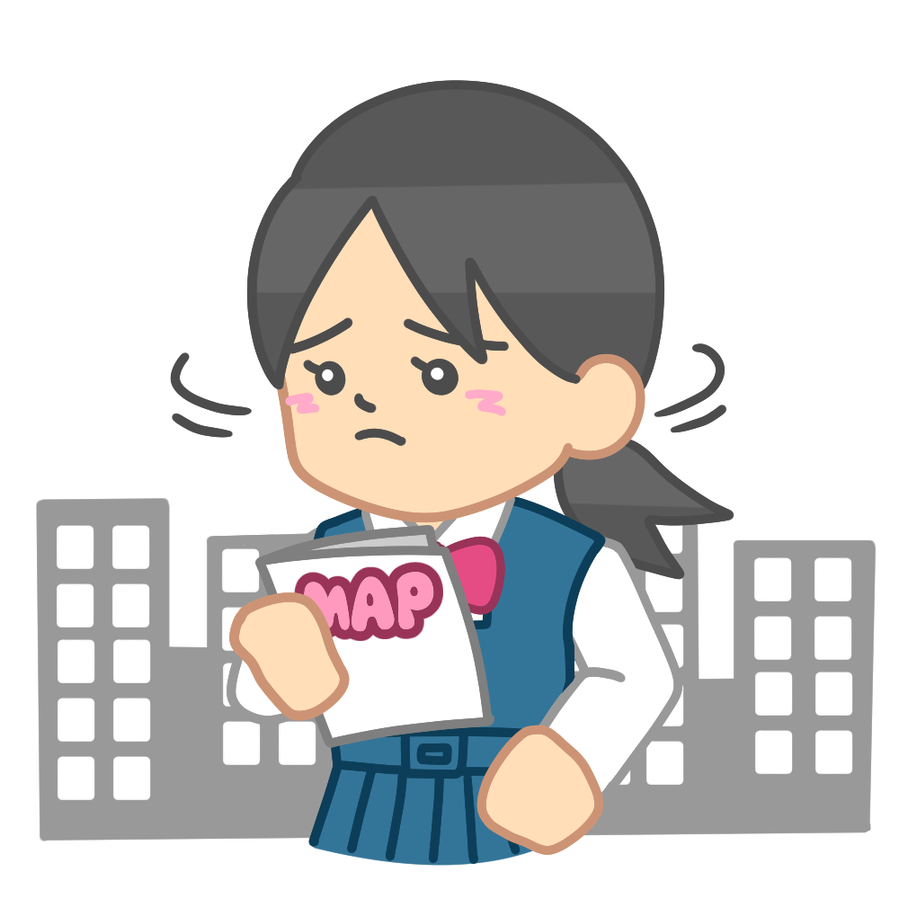 道に迷う中間服女子(地図) 投稿日 2025-05-12 更新日 2025-05-17 著者 hista006 カテゴリー 修学旅行 地図を見ながら都会や田舎で道に迷う生徒のイラストです。【修学旅行】 中間服 修学旅行 困る 地図 迷う