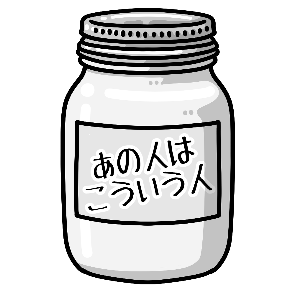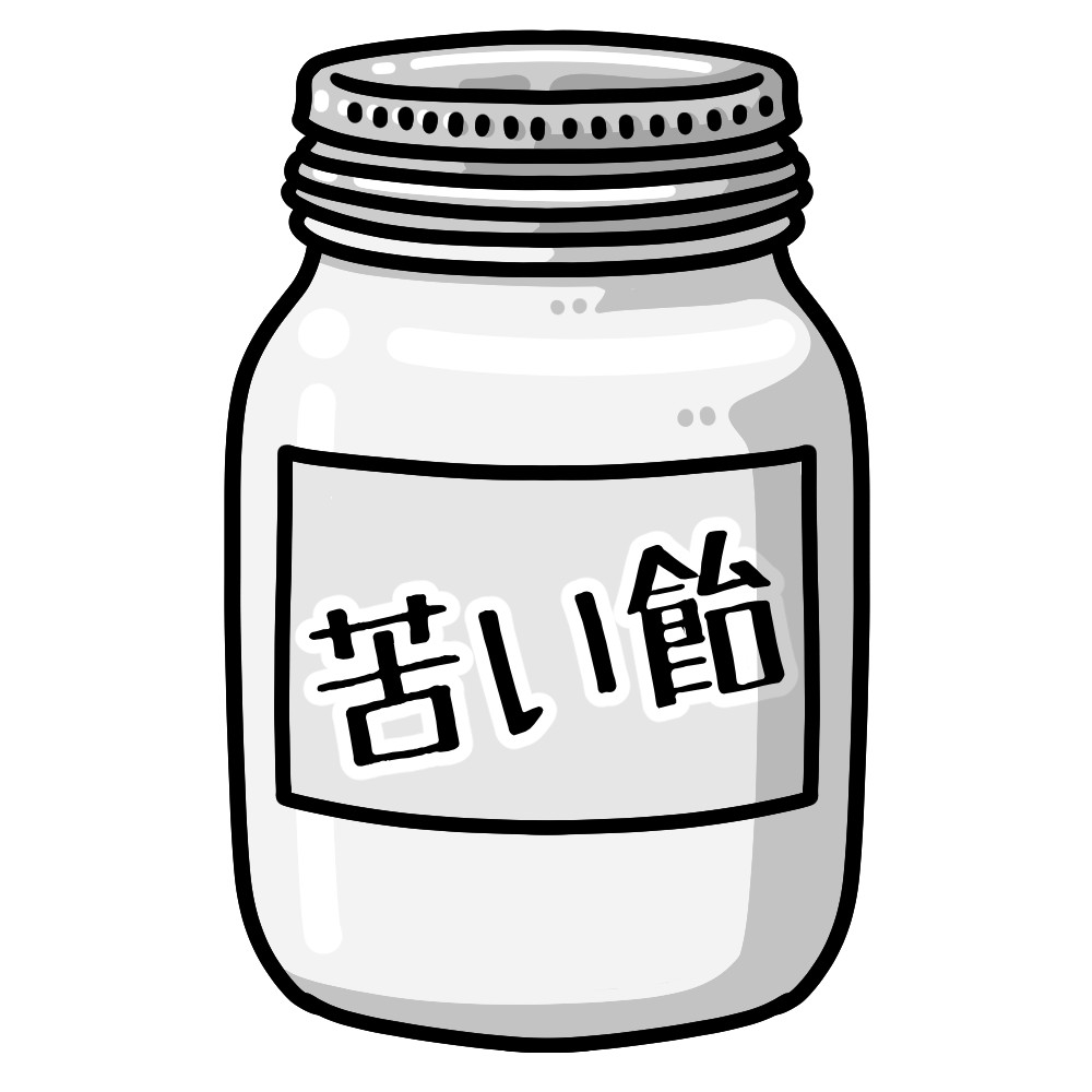 学級通信や道徳に使える「苦い飴」やマイナスの言葉が書かれたガラス瓶の容器のイラストです。