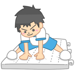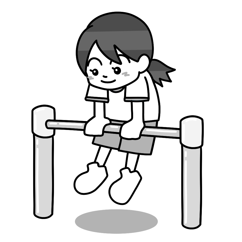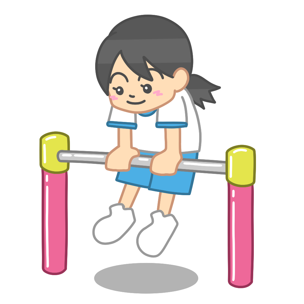 体育で鉄棒運動を行う児童のイラストです。