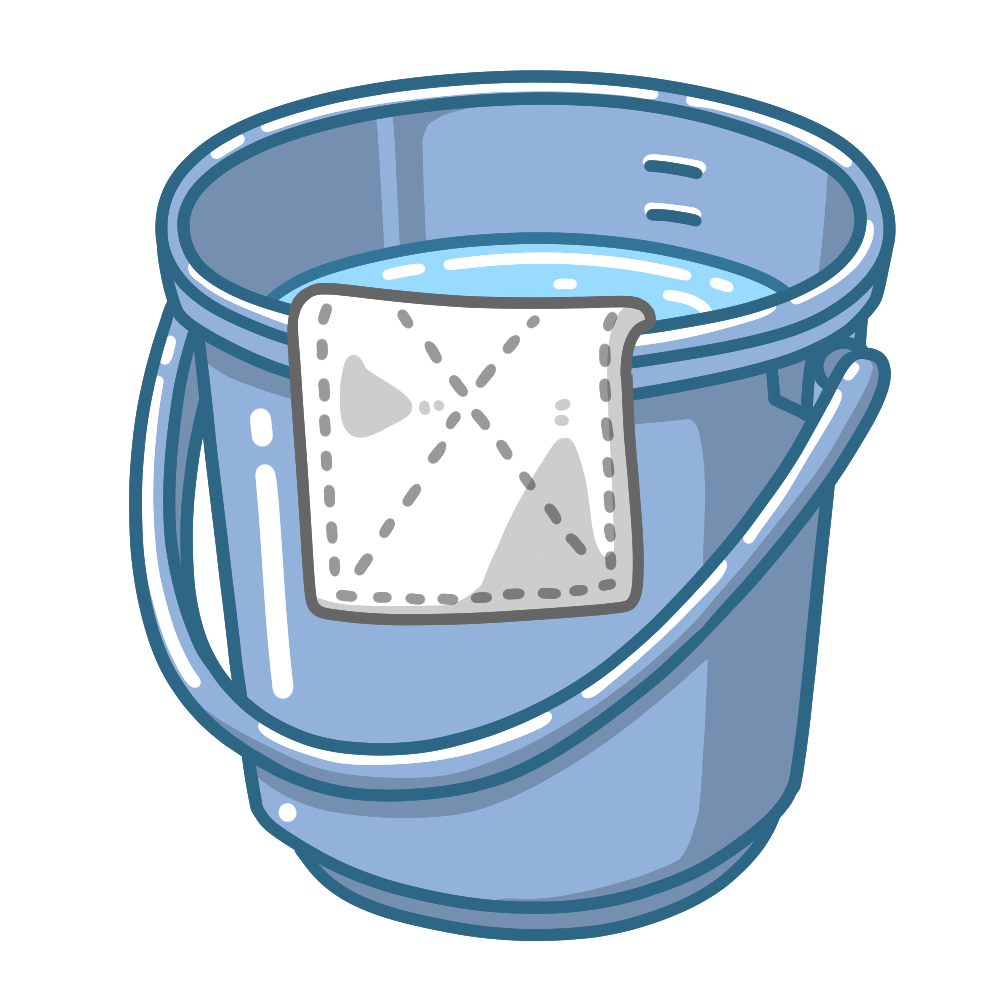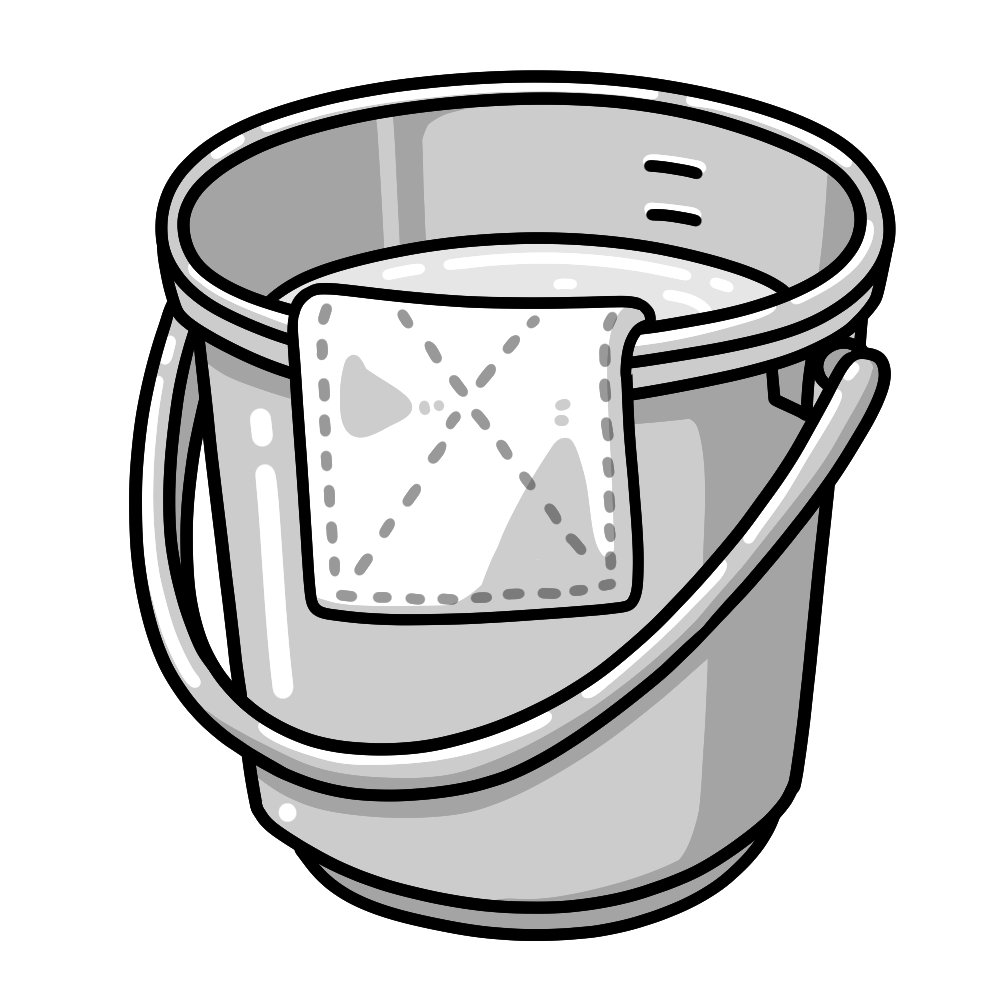 雑巾がかかった水の入ったバケツのイラストです。【掃除】
