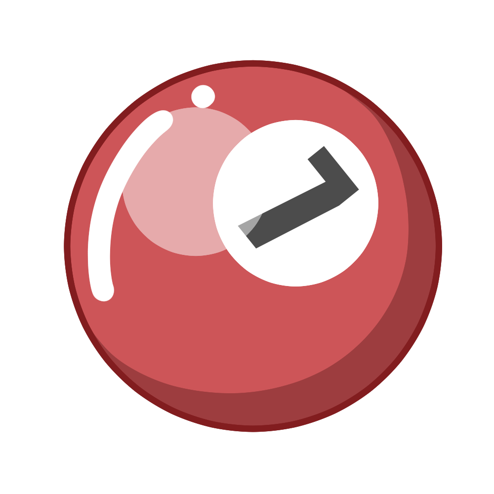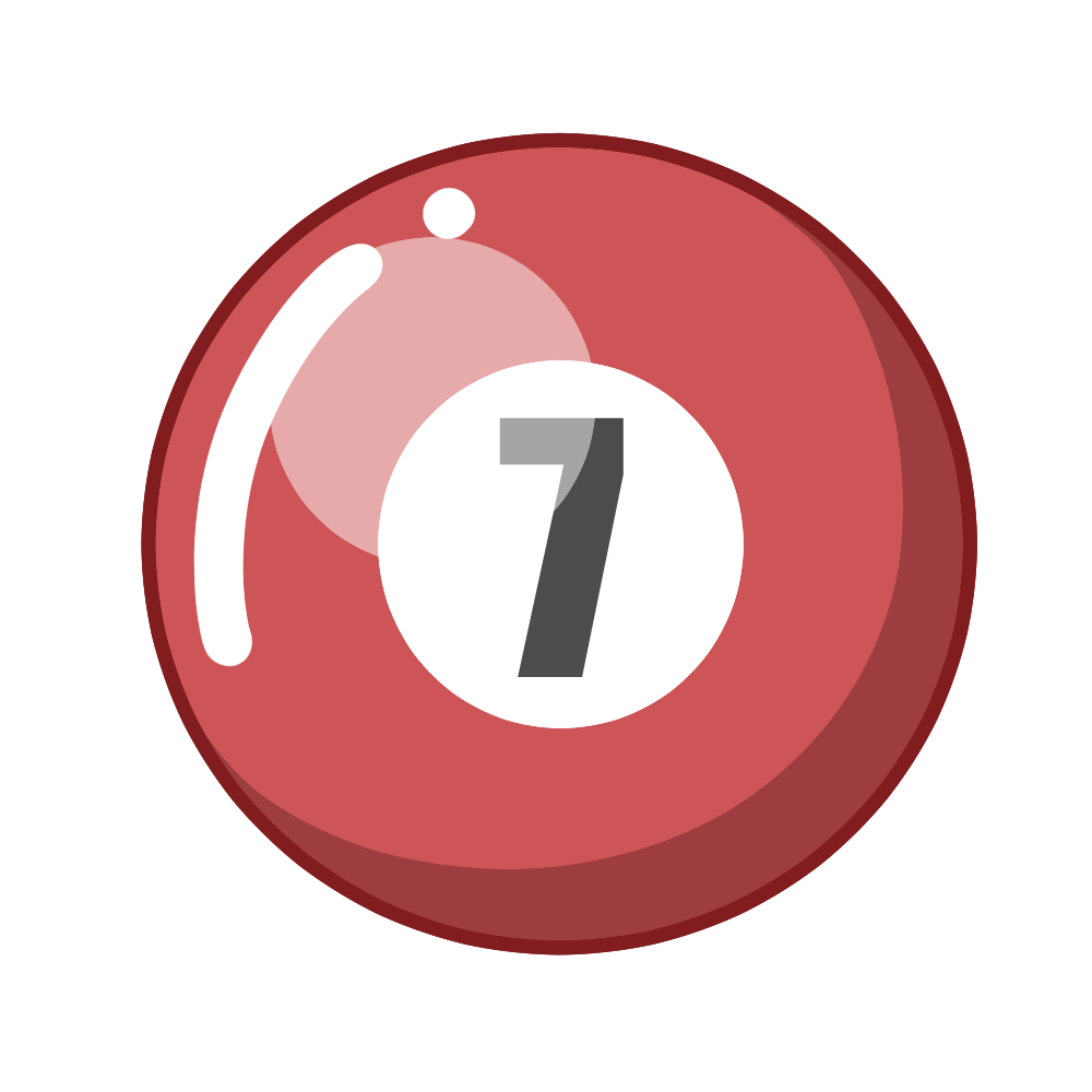 このイラストは、えんじ色(濃い赤)に番号「7」が描かれたビリヤードの「7番ボール」を表現したデザインです。色と数字で識別できるナンバーボールは、ビリヤードのルール説明や趣味紹介、順番や数字学習にも活用しやすい素材です。