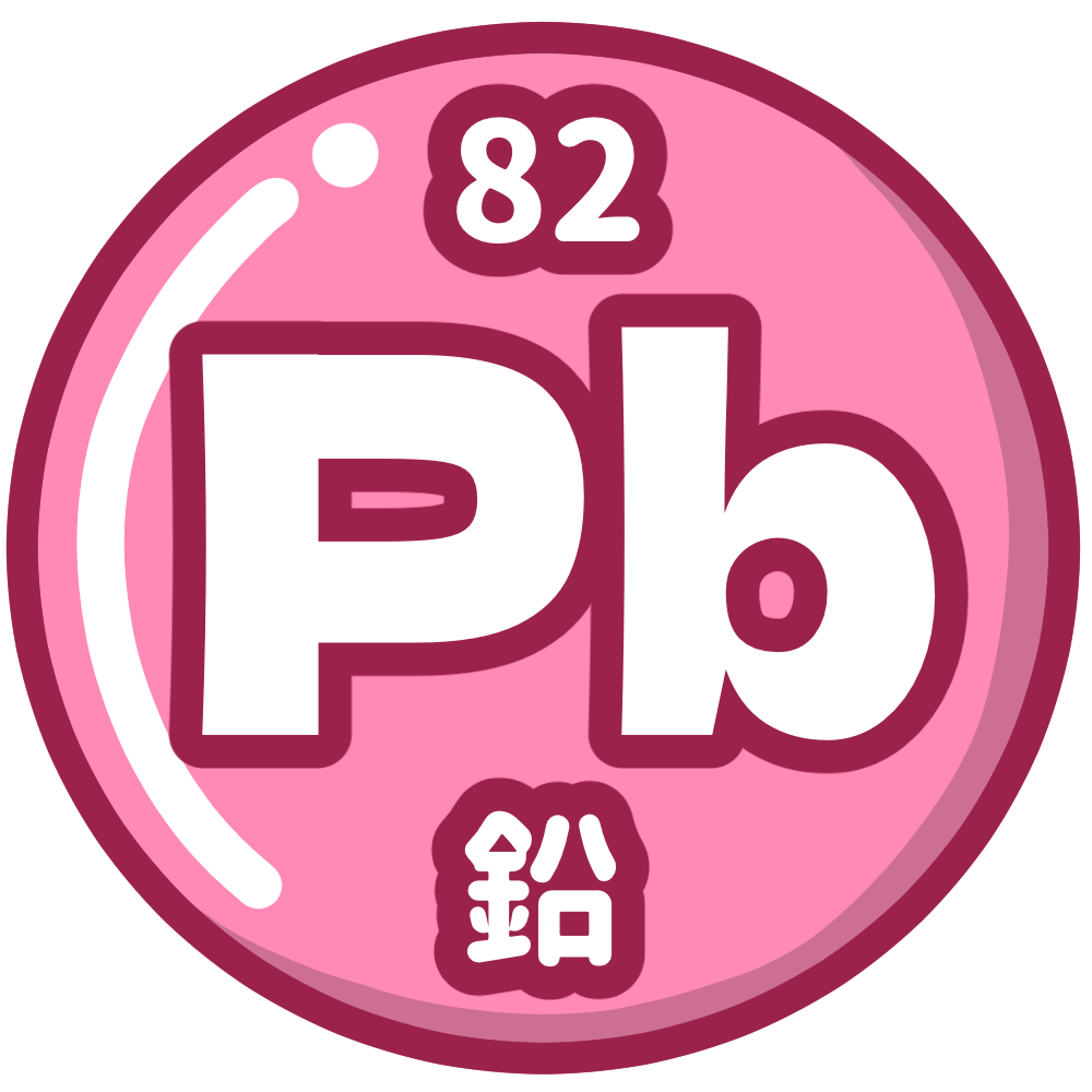 鉛は、原子番号82、後周期の金属元素で、重くて柔らかく、加工しやすい性質をもちます。古くは水道管や塗料、はんだ、蓄電池などに使われていましたが、毒性があるため現在では多くの用途で使用が制限されています。化学や環境問題、安全教育の学習に活用できる、シンプルで視認性の高いデザインです。