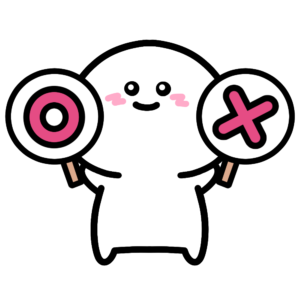 悩むしらたま(○×) 投稿日 2025-07-10 著者 hista006 カテゴリー しらたまのイラスト 「うーん…まるかな?でも…バツかも…?」〇と×の札を両手に持って、ちょっと困り顔のしらたま。自信なさげだけど真剣に考え中!見る人に「どっちだと思う?」と投げかけてくれる、ちょっぴり可愛い迷い顔の1枚です。 【使い方アイデア】・クイズや選択問題のイラストに・考える場面や迷っているシーンの装飾に・判断・選択をテーマにした教材や掲示に クイズ しらたま 悩む 迷う