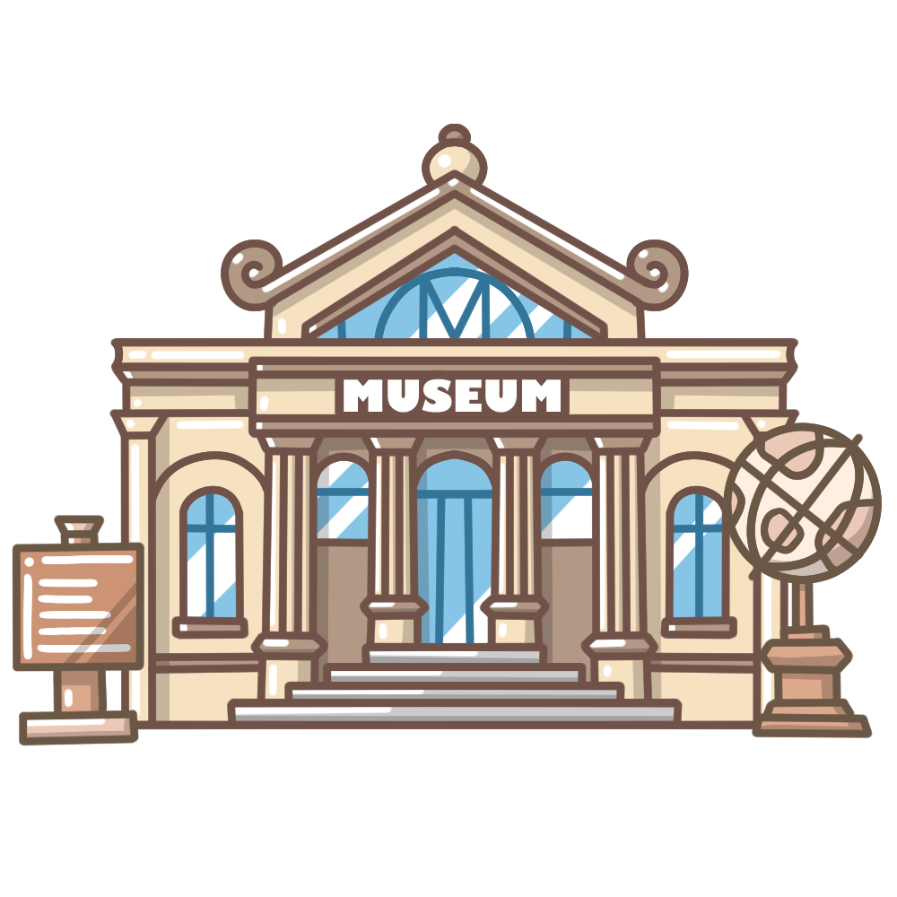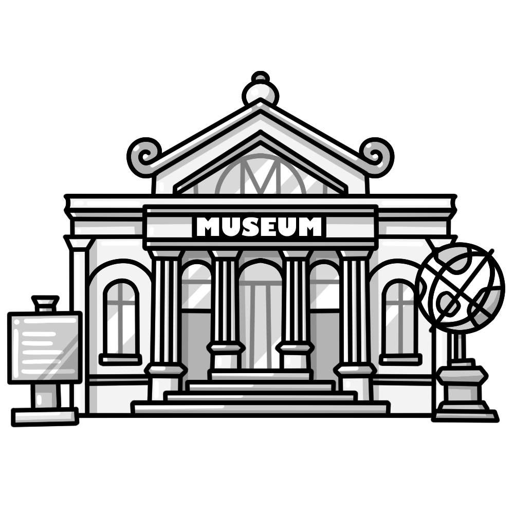 このイラストは、クラシックで重厚感のある外観をイメージした博物館の建物を描いたデザインです。歴史・科学・美術など幅広いテーマの展示施設として、多くの学びと発見が得られる場所を象徴しています。校外学習や社会科見学、自由研究の紹介などにぴったりな素材です。
