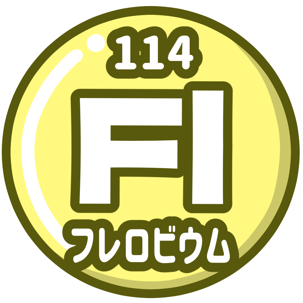 フレロビウムは、原子番号114の人工放射性元素で、超重元素に分類されます。ロシアのドゥブナにあるフレロフ核反応研究所で発見されたことにちなみ、施設名から命名されました。自然界には存在せず、非常に短い半減期を持つため、主に原子核物理や元素合成の研究に用いられています。元素の発見や命名の背景を学ぶ教材として適した、視認性の高いシンプルなデザインです。