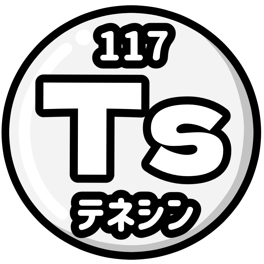 テネシンは、原子番号117の人工放射性元素で、超重元素のひとつです。ロシアとアメリカの共同研究により2010年に合成され、アメリカ・テネシー州にある複数の研究機関(オークリッジ国立研究所など)の貢献をたたえて命名されました。自然界には存在せず、寿命はごく短く、研究目的でのみ合成されます。命名の背景や国際的な研究の成果を学ぶ教材として適した、シンプルで視認性の高いデザインです。