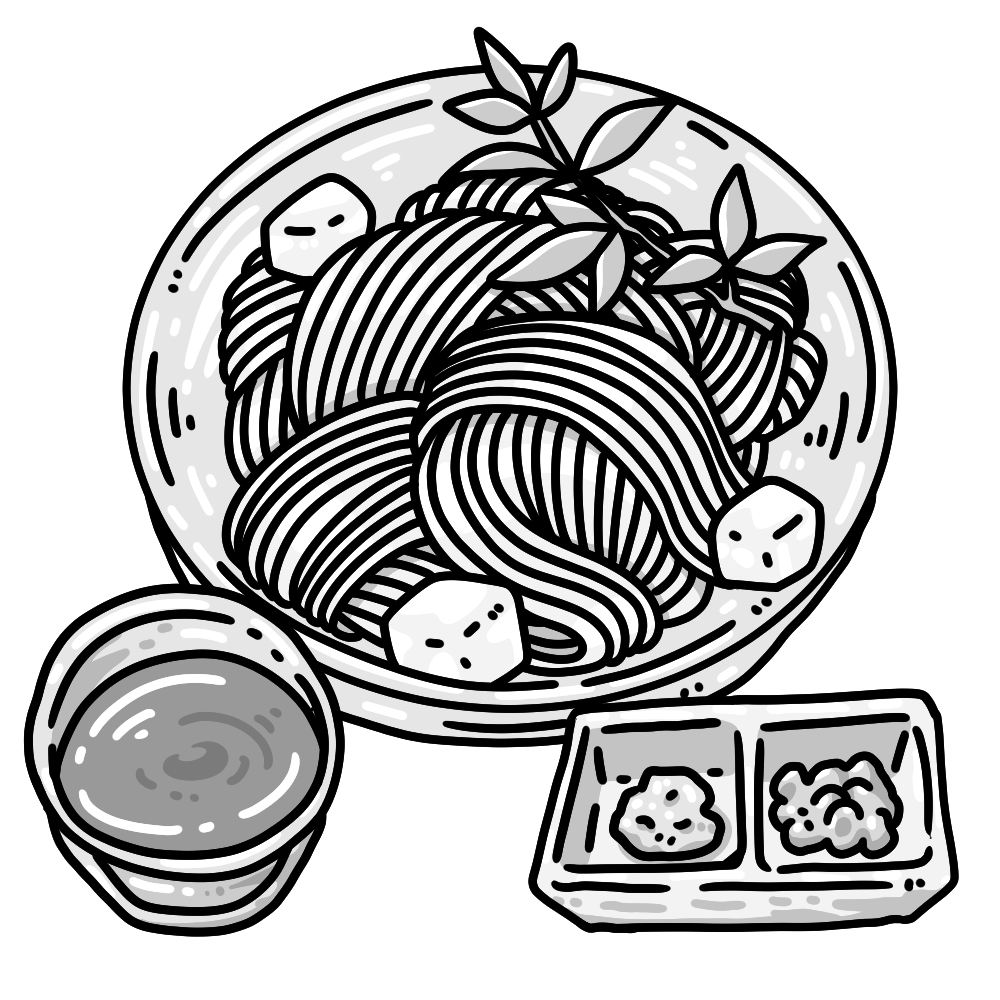 そうめんのイラストです。(和食、夏、冷たい麺、料理、食べ物、行事食)
