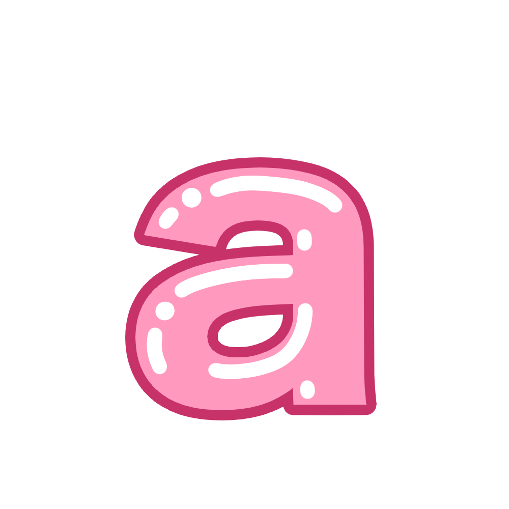 丸みがありながらも整った形の小文字“a”。英語学習の基本や、文字の識別練習に適したシンプルなデザインです。