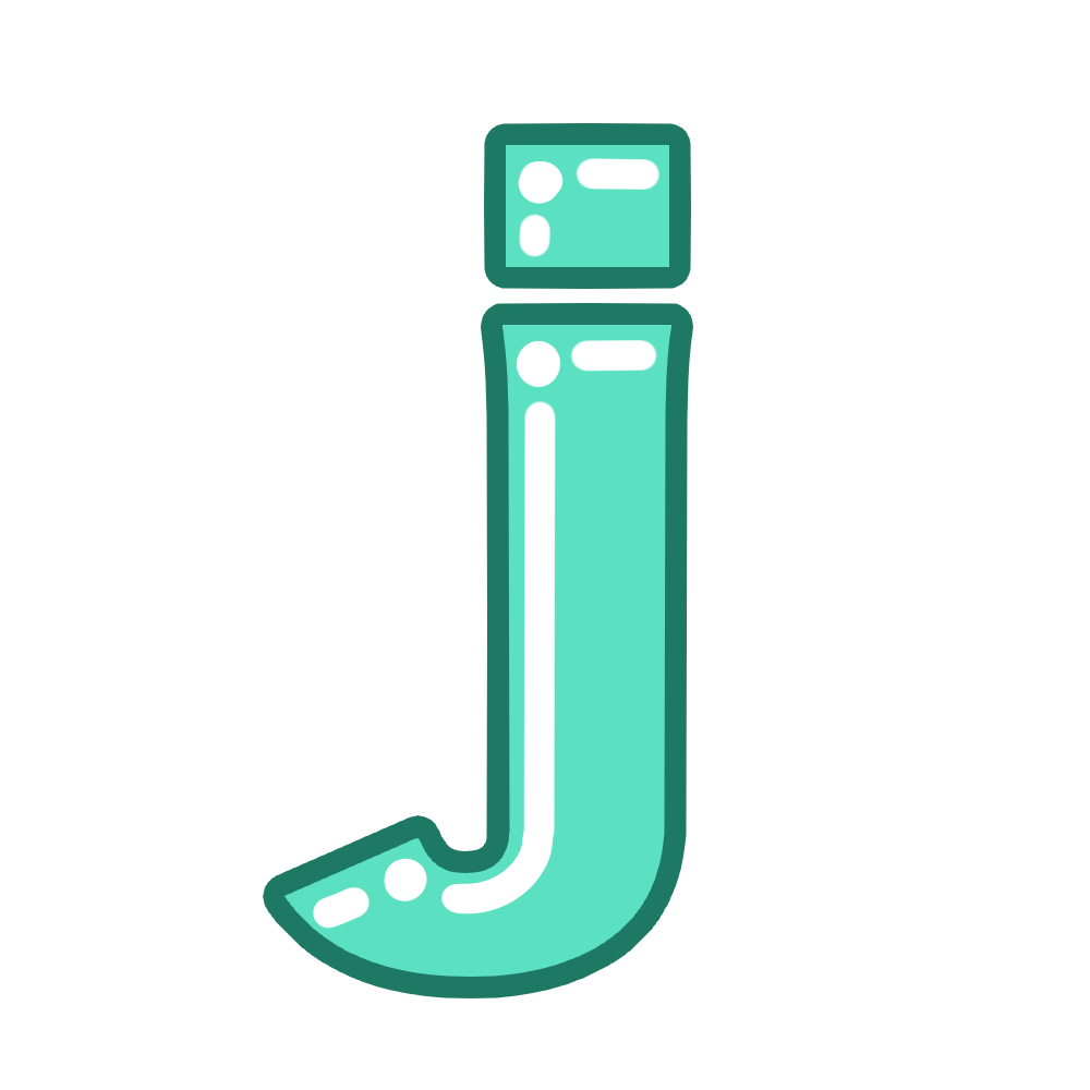 アルファベット小文字の「j」のイラストです。(英語、フォント、文字、アルファベット、教育)