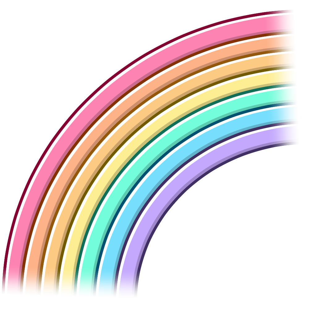 虹の一部を切り取ったような1/4サイズのデザインで、文字を挟んだり、ページやカードの装飾として使いやすい形になっています。柔らかな色合いで、資料やデザインに華やかさと明るさをプラスできます。