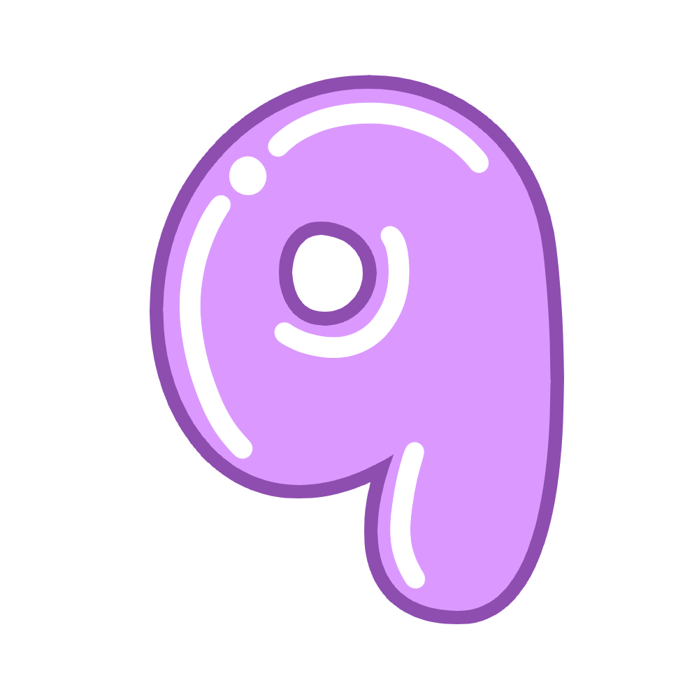 丸文字のアルファベット小文字「q」のイラストです。(アルファベット、文字、丸文字、シンプル、教育)