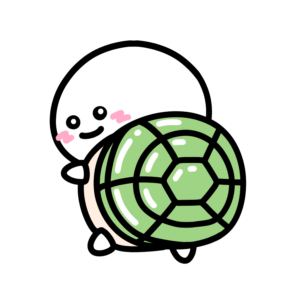 亀の甲羅を背負ったしらたま。ゆっくり歩きつつも、なんだか誇らしげでちょっぴり可笑しい姿。