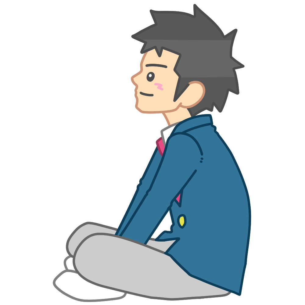 あぐらをかくブレザー男子(横) 投稿日 2025-09-03 著者 hista006 カテゴリー 中学生・高校生 あぐらをかくブレザー制服を着た男子生徒(横向き)のイラストです。(学校生活、座る姿勢、リラックス、落ち着いた雰囲気)制服姿の生徒が横向きであぐらをかき、落ち着いた様子で座っている様子。自然体の姿勢が、授業以外のリラックスした時間や生活の一場面を感じさせるイラストです。 【使い方アイデア】・学校生活や生徒の姿を紹介する教材や広報資料に・生活指導や姿勢に関する資料に・学園生活を表すイラスト素材として・掲示物やパンフレットの挿絵に ブレザー 休み時間 座る