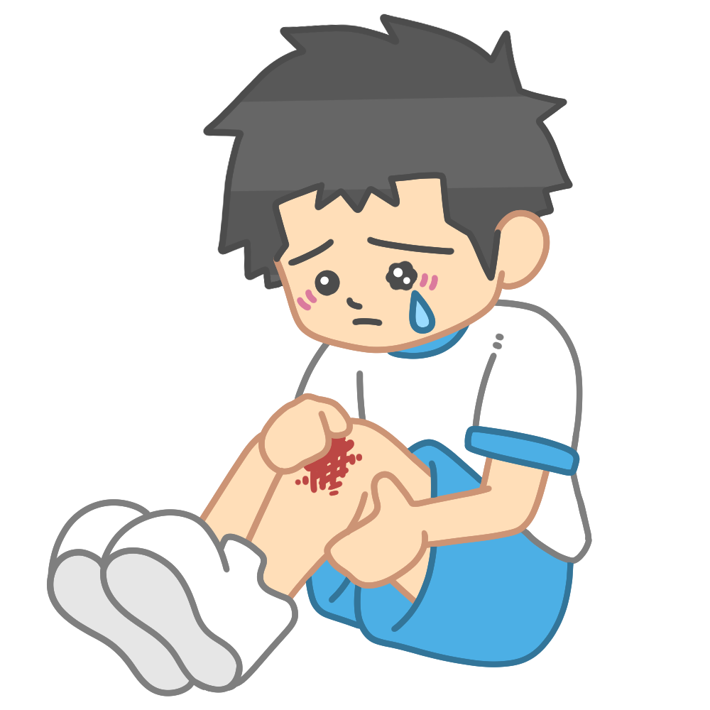 ひざを擦りむいた体操服男子 投稿日 2025-09-08 更新日 2025-11-22 著者 hista006 カテゴリー 保健室 膝を怪我した体操服を着た男子生徒のイラストです。運動中に転んで膝を擦りむいてしまった児童、生徒の様子を描いたイラストです。体育や運動会、体育祭などの場面でのけがや注意喚起に役立ちます。保健指導や安全教育の教材としても活用できます。【怪我、すり傷、擦り傷、血】 【使い方アイデア】・体育や運動会でのけが防止の掲示物に・保健指導や養護教諭の掲示資料に・安全指導や応急手当の学習教材に・学校だよりや学級通信のイラストに 体操服 体育 体育大会 体育祭 保健室 怪我 患者 血 運動会