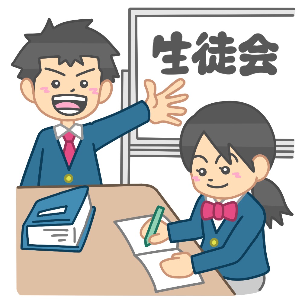 生徒会活動(ブレザー) 投稿日 2025-09-13 著者 hista006 カテゴリー その他行事 生徒会室で話し合うブレザー制服を着た生徒会役員のイラストです。机を囲んで会議をしている生徒会役員の様子を表したイラストです。学校生活の中心となる生徒会活動をイメージでき、真剣に意見を交わしながら学校行事や活動内容を決めていく雰囲気を伝えることができます。学級会や自治活動の説明などにも活用しやすい一枚です。 【使い方アイデア】・生徒会活動の紹介ポスターやしおりに・学校行事の広報資料に・自治活動や話し合い学習の教材に・生徒会室や掲示板の装飾に ブレザー ホワイトボード 会議 専門委員会 生徒会