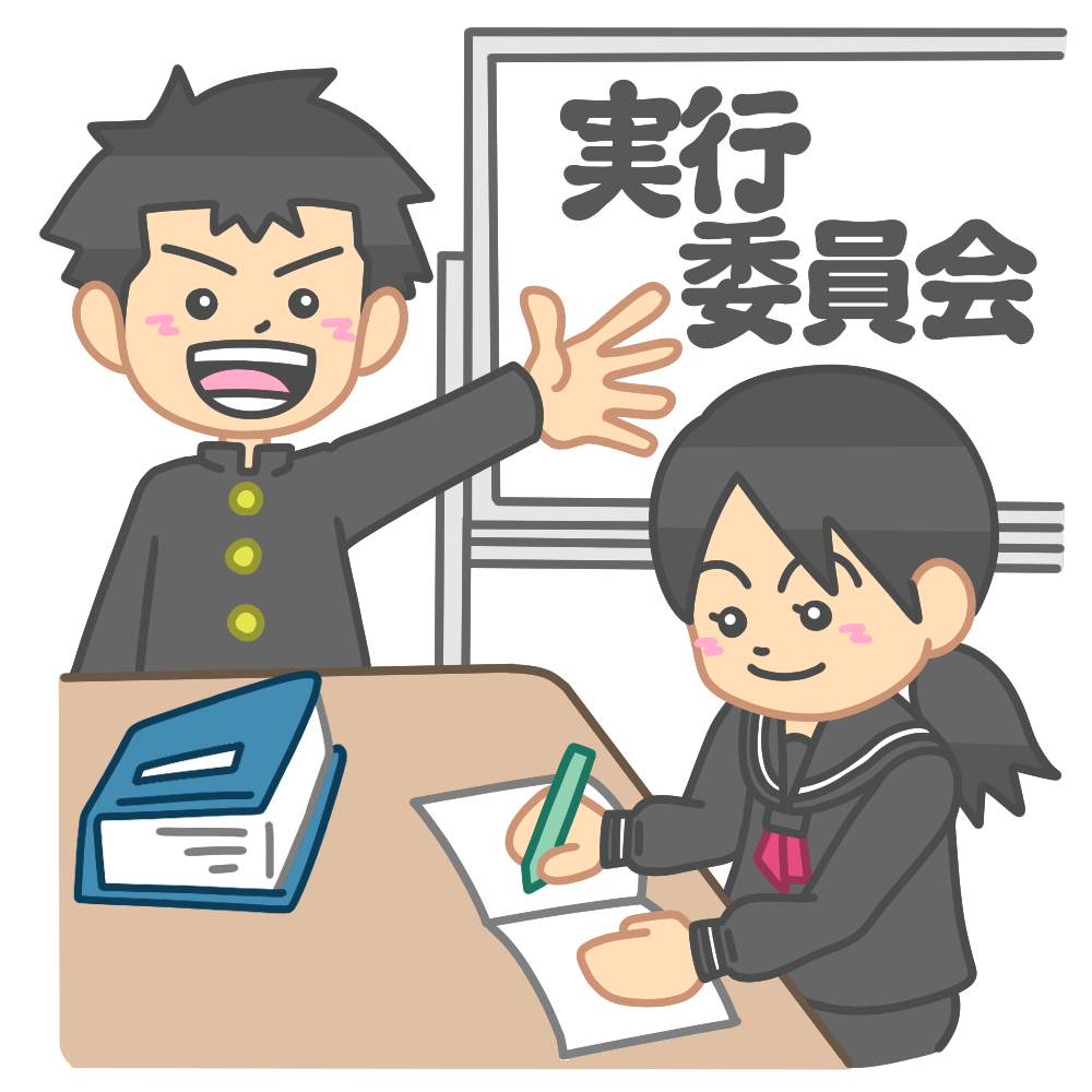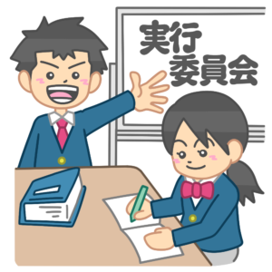 話し合う学ランやセーラー服を着た実行委員会のイラストです。