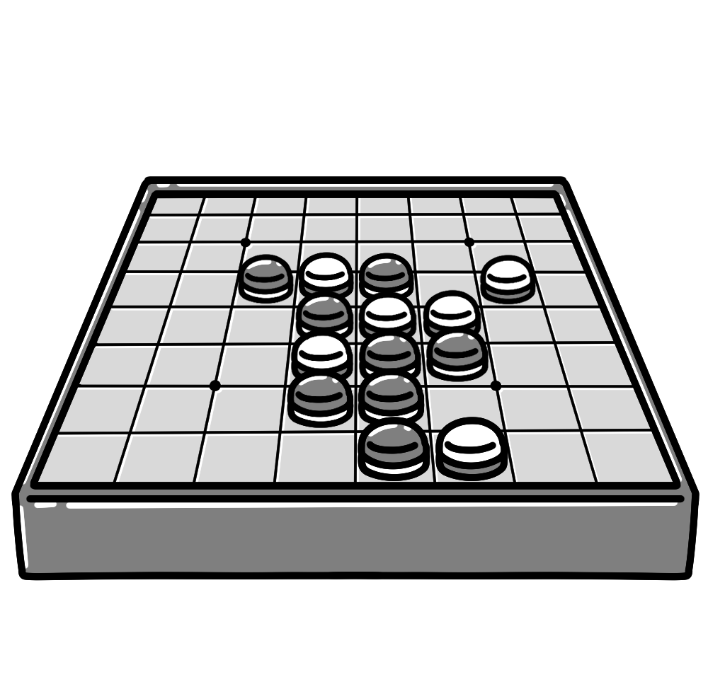 オセロ 投稿日 2025-10-03 著者 hista006 カテゴリー 道具・物 斜めから見たプレー中のオセロ盤のイラストです。立体的な角度で表現されており、実際に盤を前にしているような雰囲気があります。オセロやリバーシを紹介する場面や、遊び方を説明する資料に役立ちます。【使い方アイデア】 ・オセロの遊び方を説明する教材に・ボードゲーム紹介やポスターの挿絵に・児童館や学校でのレクリエーション資料に・集中力や戦略性をテーマにしたデザインに オセロ ゲーム