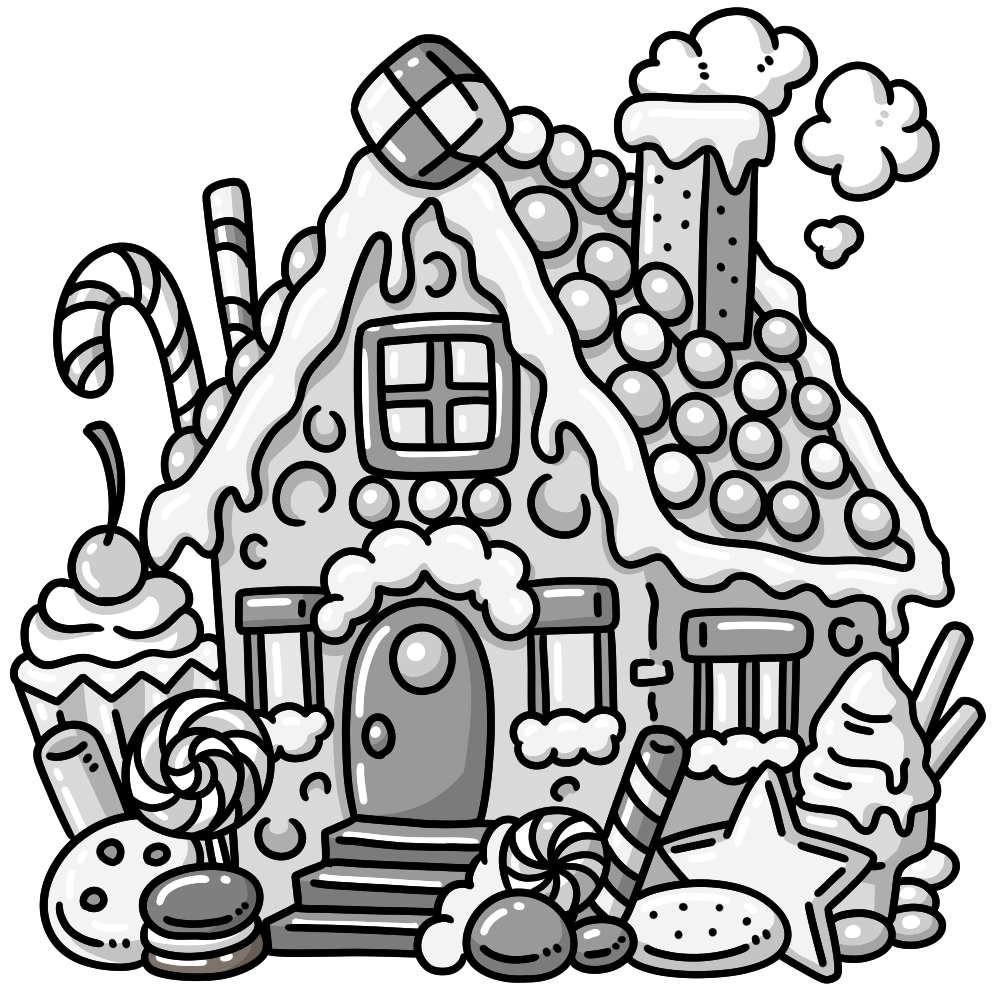 お菓子の家のイラストです。(スイーツ、メルヘン、夢、ファンタジー)
