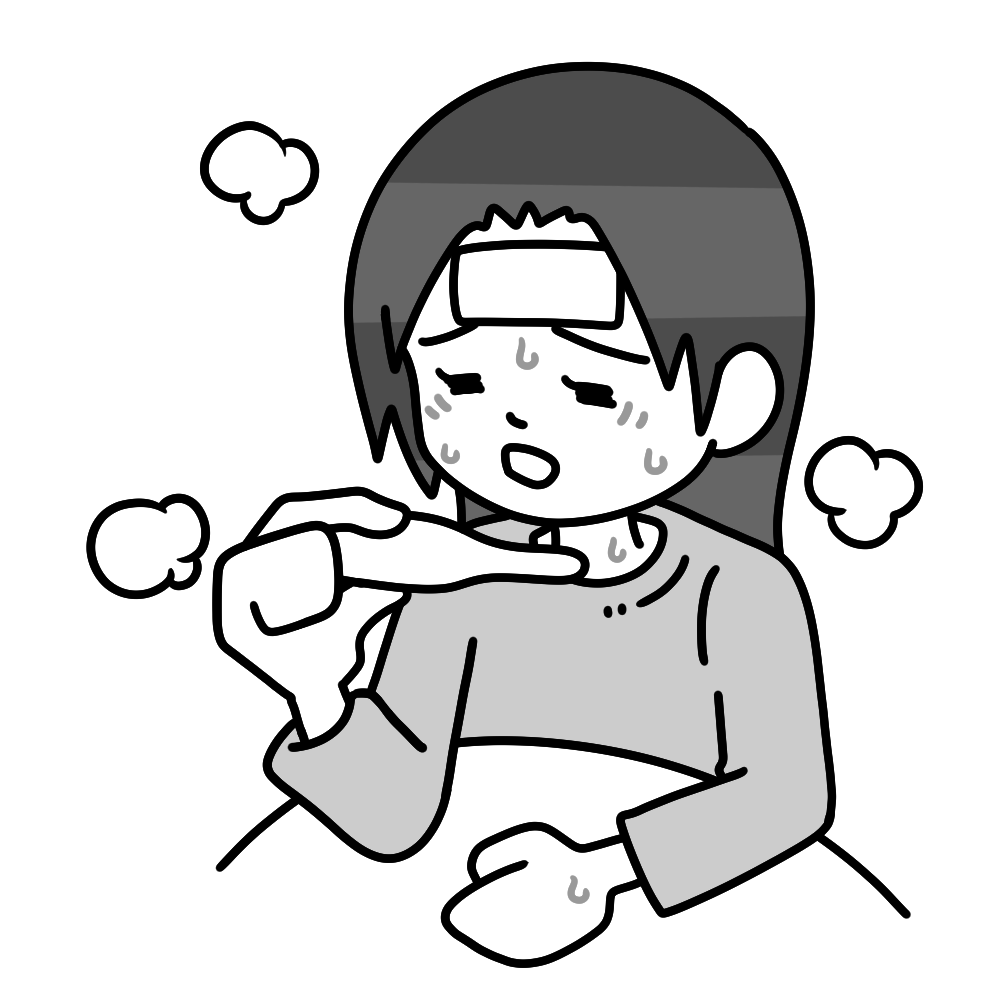 熱を測る女性 投稿日 2025-11-21 更新日 2025-11-22 著者 hista006 カテゴリー 医療 ベッドの上で熱を測っているきつそうな女性のイラストです。体調が悪く、ベッドの上で体温計で熱を測っている男性を描いたイラストで、風邪や発熱、体調不良の場面を伝えるときに使いやすい素材です。 【使い方アイデア】・保健だよりや学級通信の体調管理コーナーに・風邪・インフルエンザ予防の掲示物に・医療・介護の説明資料の挿し絵に インフルエンザ コロナ 体調不良 保健室 医療 患者 風邪
