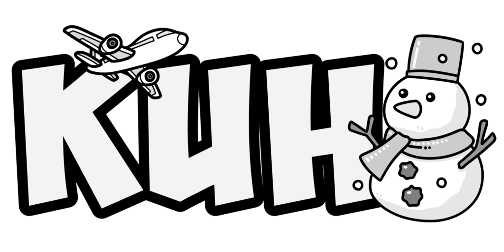 雪だるまを添えたたんちょう釧路空港の空港コード「KUH」の文字イラストです。