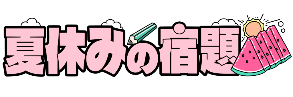 夏休みの宿題 投稿日 2025-12-04 著者 hista006 カテゴリー 文字 スイカを添えた「夏休みの宿題」の文字イラストです。(夏休みの宿題、季節、学校)夏らしいスイカをモチーフにしたデザインで、夏休み期間中の学級通信や宿題プリント、案内文などに使いやすいイラストです。季節感を出したいときや、子どもたちに分かりやすく宿題の内容を伝えたい場面にも便利です。 【使い方アイデア】・夏休みの宿題プリントのタイトルに・学級通信の季節コーナーに・家庭へのお便りの見出しに・夏の行事や学習計画のイメージカットとして お便り スイカ 夏休み 宿題 掲示物 文字 鉛筆
