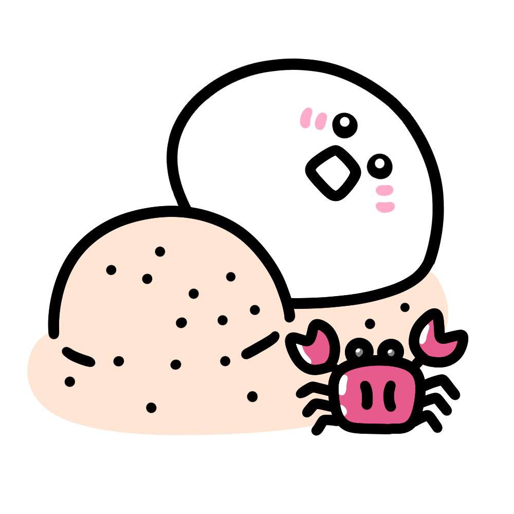 砂埋もれしらたま 投稿日 2025-12-06 著者 hista006 カテゴリー しらたまのイラスト 「みんなに砂で埋められちゃった…!」浜辺でしらたまが胸まで砂に埋められて、ちょこんと顔だけ出している様子のイラストです。友だちに遊び半分で埋められたような可愛い雰囲気で、夏の行事や海遊びのほのぼのした場面にぴったりです。 【使い方アイデア】・夏休みのしおりやお便り・海水浴の注意喚起やレジャー紹介・季節イベントのタイトル下のワンポイント・日焼けや熱中症対策の資料のアクセントに しらたま 海 蟹