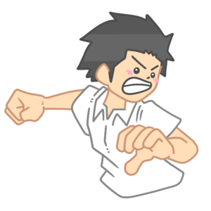 殴りかかるブレザー男性 投稿日 2025-12-11 更新日 2025-12-12 著者 hista006 カテゴリー 中学生・高校生 殴りかかろうとしているブレザー制服を着た生徒のイラストです。(生徒指導、喧嘩)学校内で起こりうるトラブルを説明したいときに使いやすく、生徒指導の資料や安全教育、ケーススタディなどで状況を分かりやすく示す目的に役立ちます。 【使い方アイデア】生徒指導やトラブル対応の研修資料に喧嘩が起きたときの振り返り教材やケース提示に危険行動について注意喚起する掲示物やプリントに ブレザー 喧嘩 怒る 殴る 生徒指導